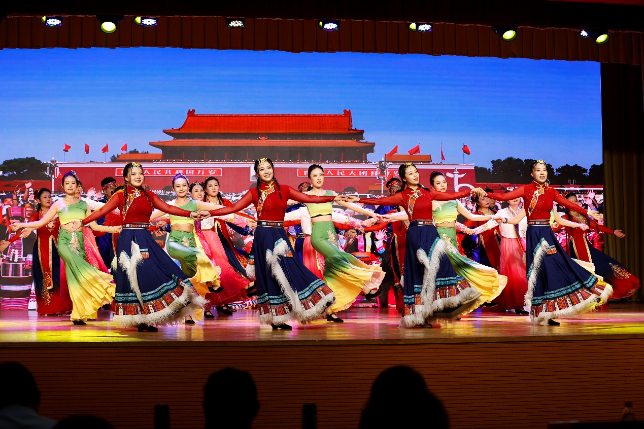 《爱我中华》作为经管学院精心准备的舞蹈作品,以庆祝建国75周年为主题,通过优美的舞姿和深情的表演,展现了中华儿女对祖国的无限热爱与忠诚。舞蹈中融入了多种民族元素,如藏族、傣族、 朝鲜族、维吾尔族、蒙古族、汉族等,使得整个作品具有浓郁的民族风情。在音乐的伴奏下,老师们身着色彩斑斓的民族服装,随着欢快的节奏翩翩起舞,将现场气氛推向了高潮,用身体语言诉说着对祖国的赞美和祝福。