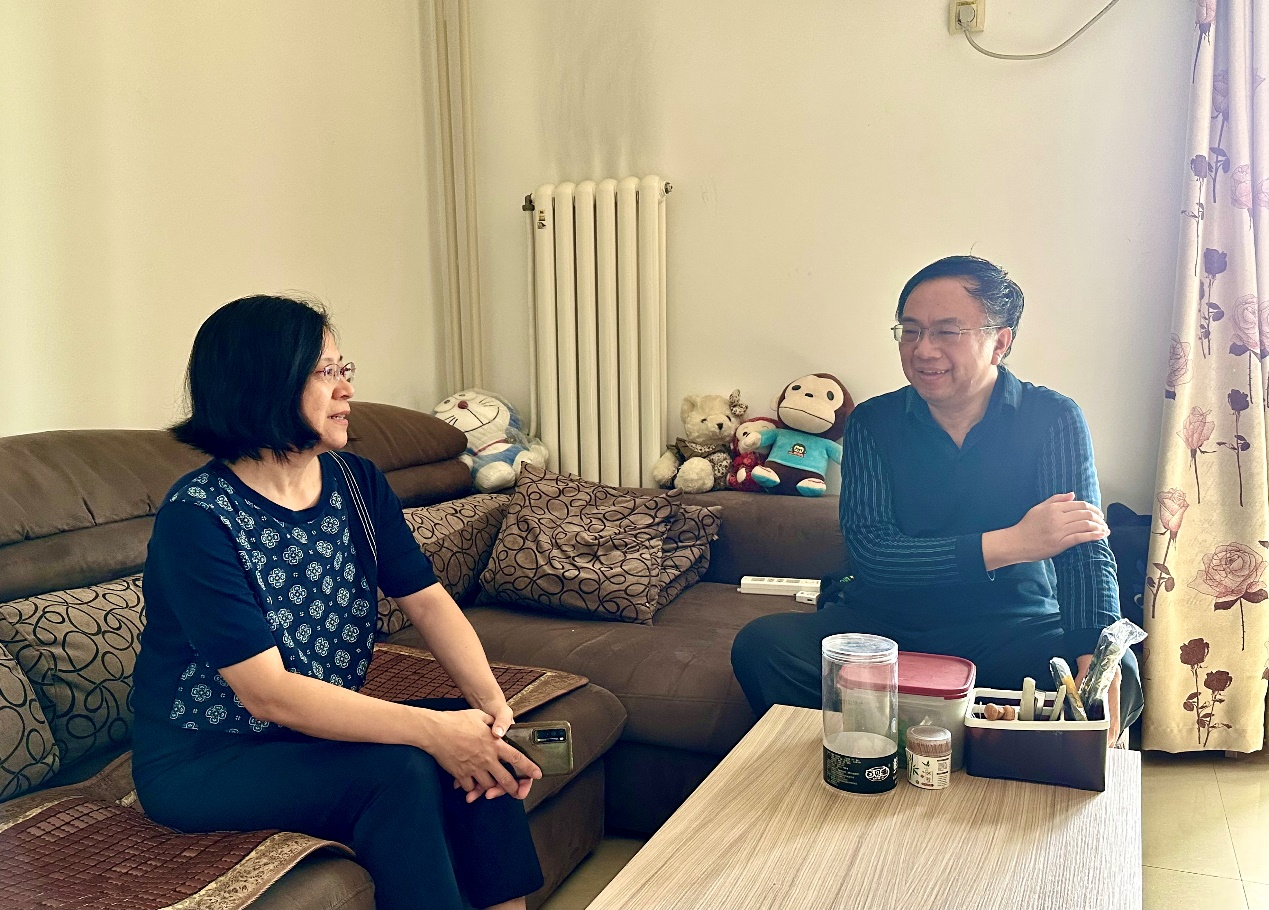 学院领导一行与老领导、老同志促膝而坐、亲切交谈,仔细询问他们的身体健康状况和日常生活情况,并祝大家双节快乐、身体健康。