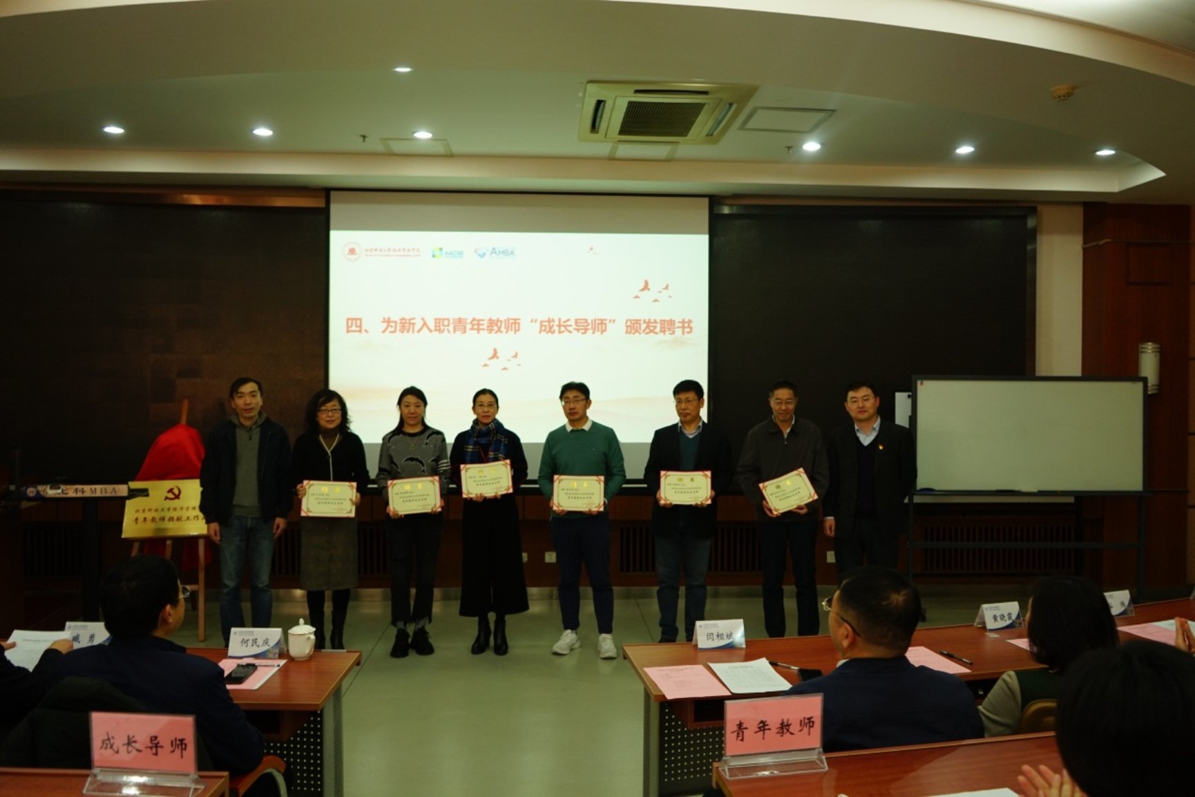 接着,副校长何民庆、臧勇和院长闫相斌、青年教师代表黄秋彬共同为学院青年教师领航工作站揭牌,何民庆、臧勇、于成文、史立伟分别为新入职青年教师“成长导师”颁发聘书。