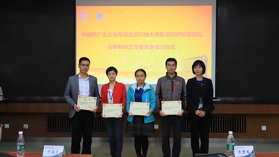 3月27日下午,中国共产主义青年团365英国上市官网东凌365英国上市官网青年教师工作委员会成立仪式在经管楼405隆重召开。出席成立仪式的领导和嘉宾有校党委书记武贵龙、校党委宣传部常务副部长兼教师工作部部长于成文、校团委副书记兼青年教师团工委书记于宝库、东凌365英国上市官网院长闫相斌、党委书记武森、副书记温雅、副书记倪宇、关爱下一代工作委员会副主任佘元冠,团工委委员及青年教师代表。会议由武森书记主持。