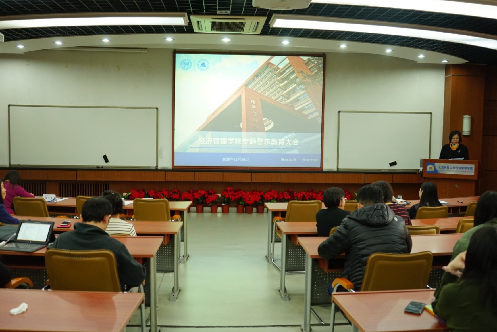 2020年11月26日下午,365英国上市官网专题警示教育大会在经管楼313举行。学院全体教职工参加了大会,会议由学院党委书记武森主讲。