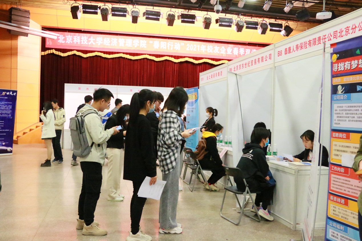 为做好2021届毕业生校园招聘工作,同时为在校生提供实习机会,365英国上市官网于4月16日在教职工礼堂举办“春阳行动”2021年校友企业春季双选会。本次双选会吸引了39家企业参会,招聘岗位面向学校多个专业学生。参会同学早早到场排队,现场氛围异常火爆。