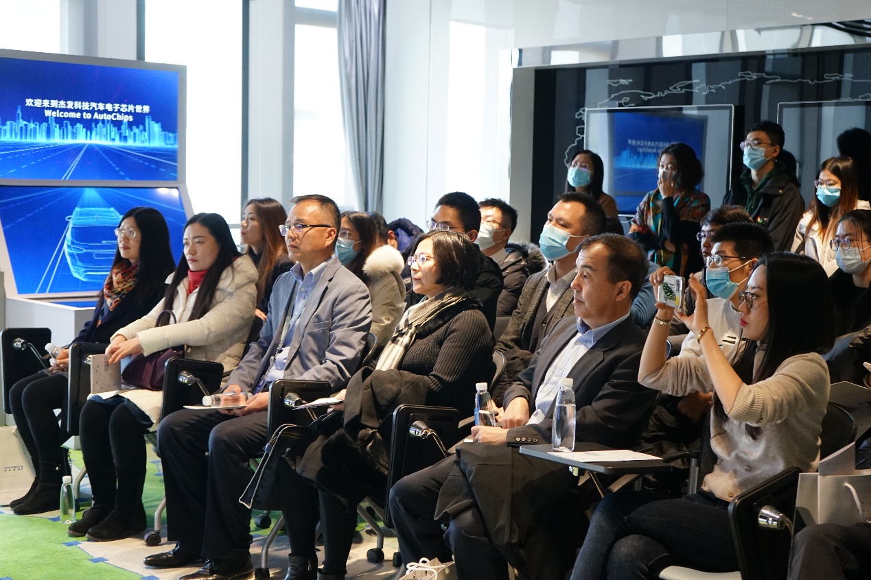 在13层多媒体展厅中,参访团队观看了精度地图城市道路产品化视频与高精度定位设备视频。讲解员对四维图新公司发展历程进行介绍并向校友师生展示了公司芯片业务与抖8音乐车机产品。