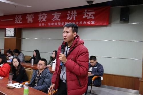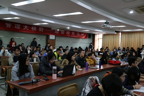 活动于下午3:30开始。党委书记戴淑芬介绍了主讲校友和经管校友讲坛系列活动后,讲座开始。校友简要介绍了自己在创业投资行业近10年的经历,结合腾讯、滴滴等高关注度企业的实际案例分享了风投行业VC、PE的操作过程和注意事项。