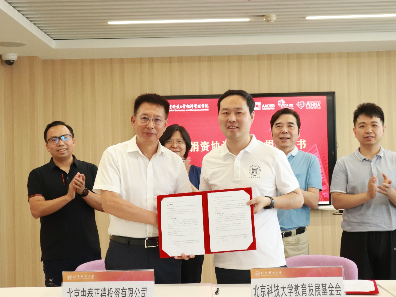 王昕校友在发言中深情回顾了在母校求学、拼搏的青春时光,感恩母校对他的培养。与学校的多年联系中,他见证了北科大代代学子的成长与精神传承,自己也从中汲取了智慧与力量。他深感荣幸和自豪,能够通过捐赠帮助更多经管学弟学妹实现梦想,捐赠只是他表达对母校深厚情感的一种方式,更重要的是,他希望通过自己的不懈努力,为母校的建设和发展贡献一份坚实的力量。
