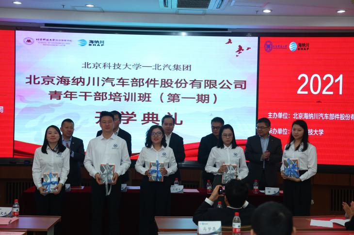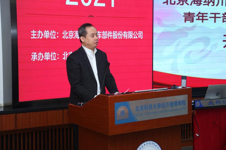 王建平在讲话中首先代表北汽集团向为此次培训提供大力帮助和支持的北科大经管学院表示衷心的感谢,并对成功入围海纳川公司2021“青干班”的学员表示祝贺。王建平从北汽集团发展以及干部队伍建设规划上,对培养锻炼年轻干部的重要意义做了动员。他勉励所有年轻干部,要珍惜机会,苦练内功,练就过硬本领;要勇于创新,全面投身高质量发展主战场;要学以致用,将初心和使命转化为实际行动。真正实现从管理驱动式培养到自我驱动式学习的转变、从单一专业型人才到跨领域复合型人才的转变、从业务技能型人才到具有广阔视野的创新型人才的转变。