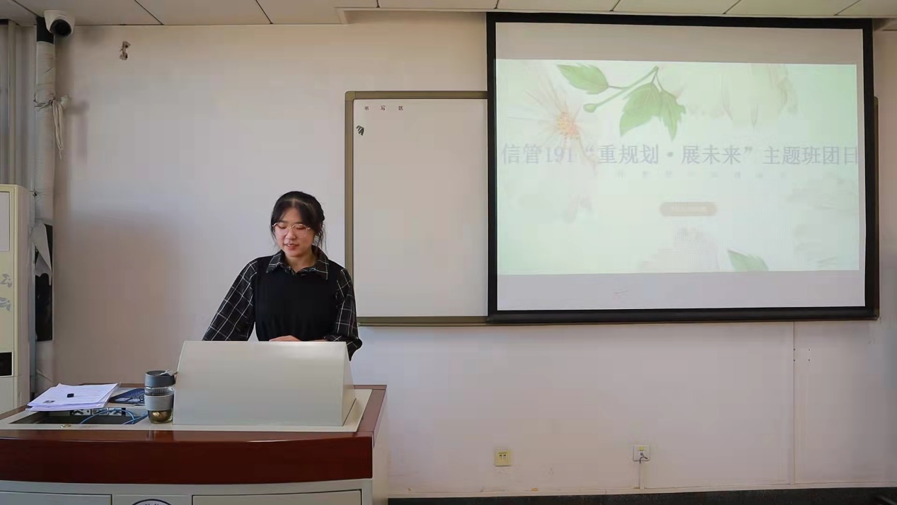 时光荏苒,行至不觉,大三的岔道口悄然铺展。为扫清同学们对发展方向的迷茫,帮助同学们今早规划未来,信管191班于2021年11月12日于经管楼507开展“重规划,展未来”主题团日活动。导员张洪榛、优秀学长冯子函与信管191班全体同学参加本次团日活动。本次活动由信管191班团支部书记徐浩然主持。