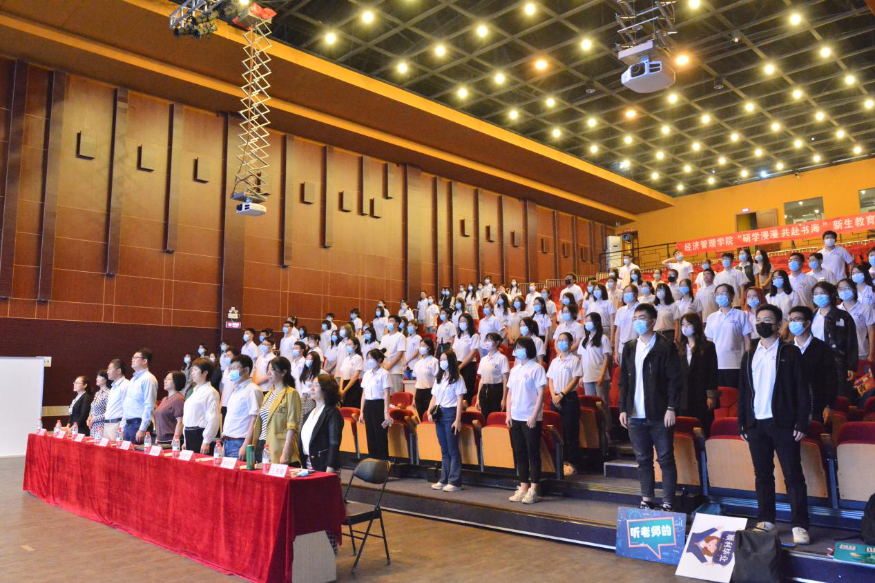 9月16日下午15:10,365英国上市官网2021级研究生迎新大会在管庄校区文娱活动中心举行。参加此次大会的有学院党委书记武森、副院长黄晓霞、副院长谷炜、党委副书记倪宇、管理科学与工程系主任杨建华、工程管理与技术经济系主任马风才、工商管理系书记李晓辉、应用经济系主任冯梅、金融工程系主任王未卿、财务与会计系研究生班主任王红霞、学院学工办主任、博士生辅导员张晓佳、2021级普硕辅导员丁源以及全体21级新生,大会由365英国上市官网党委副书记倪宇主持,开场全体起立,奏唱国歌。