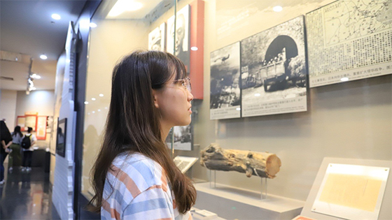 一来到纪念馆大门,就让人感到了历史的沉重感,这里记录了我国人民十余年的屈辱史和抗争史,包含着前辈们的血和泪。馆内一幅幅照片、一件件文物和一处处复原景观重重地撞击心灵,丰富的史料真实再现了中国人民同日本侵略者进行英勇斗争的光辉历程与艰苦卓绝的抗战之路,让人深受震撼,深感悲痛。