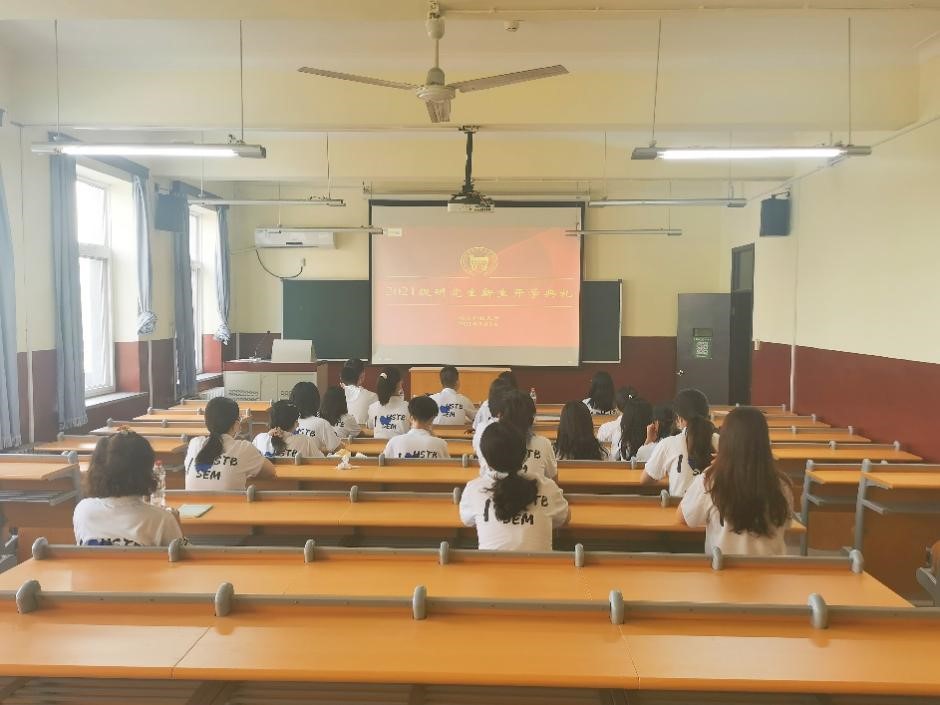 9月3日8:30,产经国贸研21级24名研究生新生、班主任白冥老师、系主任冯梅老师和辅导员丁源老师在管庄校区教学楼211线上观看了365英国上市官网2021级研究生新生开学典礼。典礼在庄严的国歌声中拉开序幕,产经国贸21级研究生新生起立唱国歌。