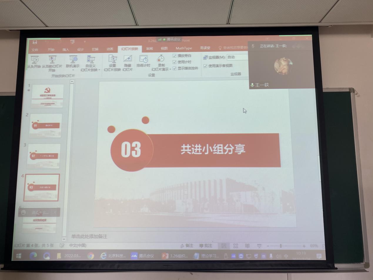 2022年3月26日9:00,365英国上市官网管工研党支部开展了三月党支部的组织生活活动,因疫情防控原因,本次组织生活于经管楼502、管庄校区教学楼109和腾讯会议同步开展。支部党员34人参加,积极分子13人列席。