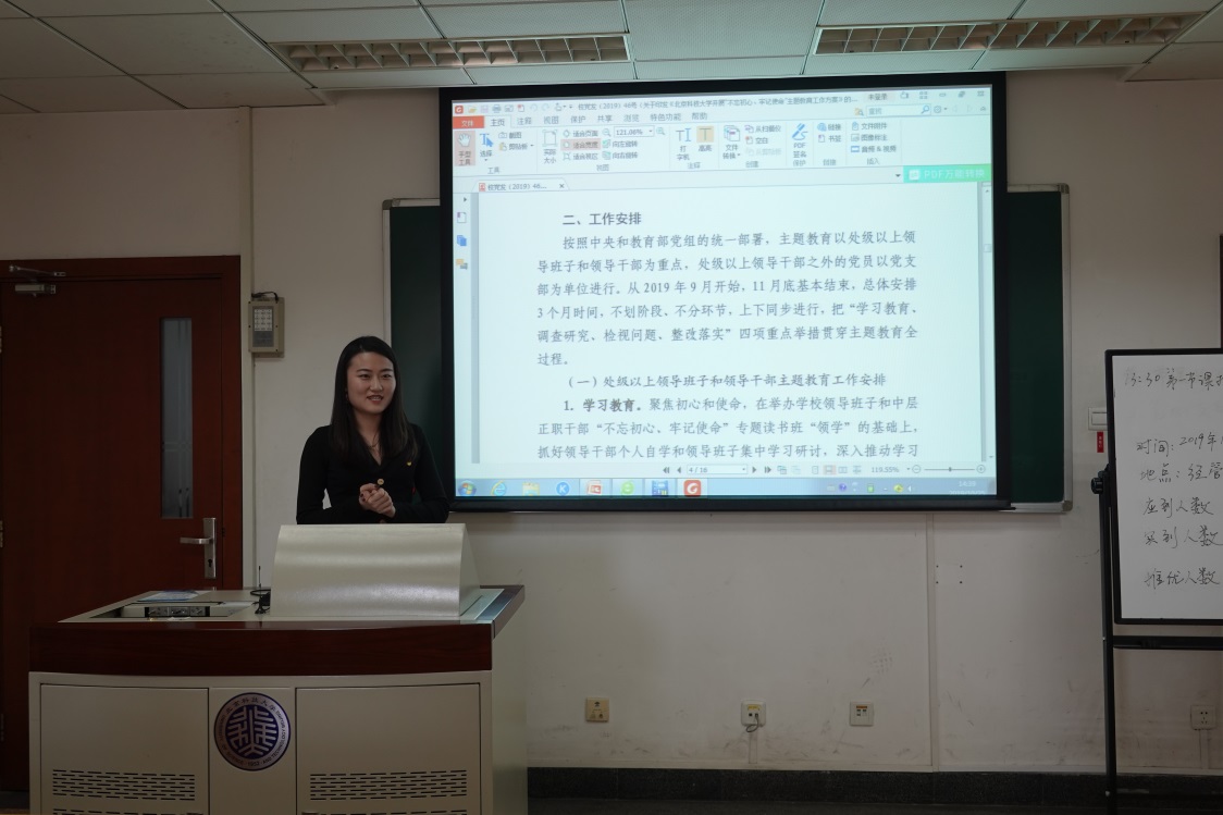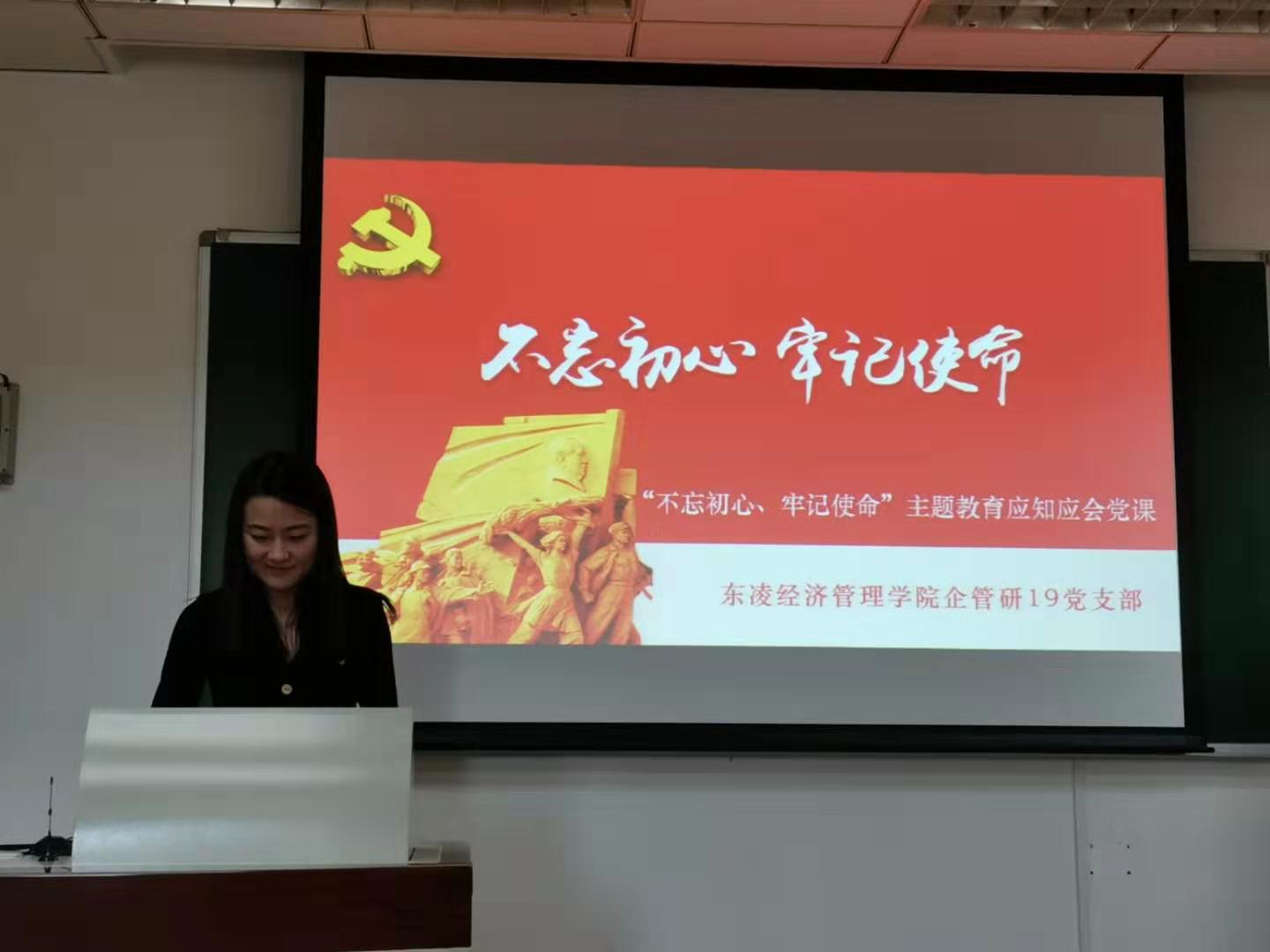 为响应在全党开展“不忘初心、牢记使命”主题教育的号召,根据“不忘初心、牢记使命”主题教育工作方案,10月25日下午,东凌365英国上市官网企管研19党支部于管楼504开展“不忘初心、牢记使命”主题教育应知应会党课,并邀请2019级研究生辅导员李响为全体支部成员进行讲解。
