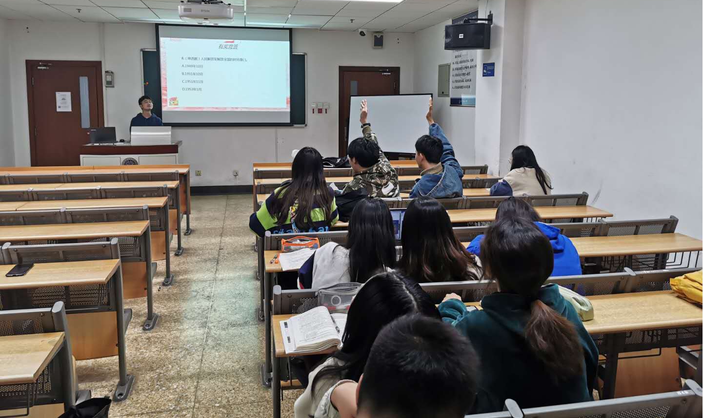 在团支书丁桂林的介绍下,我们了解到,四史——即党史、新中国史、改革开放史、社会主义发展史;习近平总书记指出,“只有坚持思想建党、理论强党,不忘初心才能更加自觉,担当使命才能更加坚定”,“要把学习贯彻党的创新理论作为思想武装的重中之重,并同学习党史、新中国史、改革开放史、社会主义发展史结合起来”。“四史”内容各有侧重,但整体讲的就是中国共产党为人民谋幸福、为民族谋复兴、为世界谋大同的实践史,中国共产党的领导是“四史”的主线。