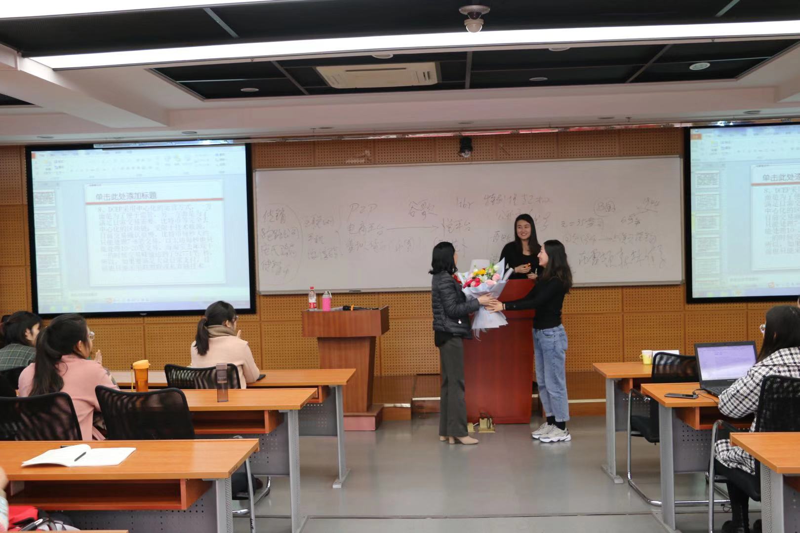 活动结束,学生代表为谢老师献上鲜花以表感谢。通过本次讲座,同学们了解了数字货币的前世今生,对金融科技究竟该如何赋能我国经济社会发展有了更深一步的思考。