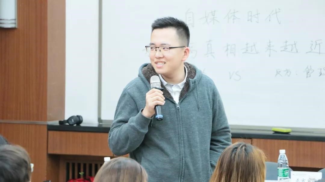 双方首先就自媒体的定义展开辩论,字字考究,严谨分辨自媒体、新媒体、传统媒体的概念和区分。随后,正方继续就定义进行确证,反方则以自媒体新闻造假的情况为切入点,直捣黄龙,细到“咪蒙造假事件”,泛至“90%的谎言”,步步紧逼,而正方也从容的做出了回应,提出数据质疑。随后的环节也是精彩纷呈,双方就官媒的权威性、官媒的新闻覆盖广度、假新闻的泛滥、国家对谣言的制裁、无效信息、人们的辨识能力等话题展开激烈讨论。