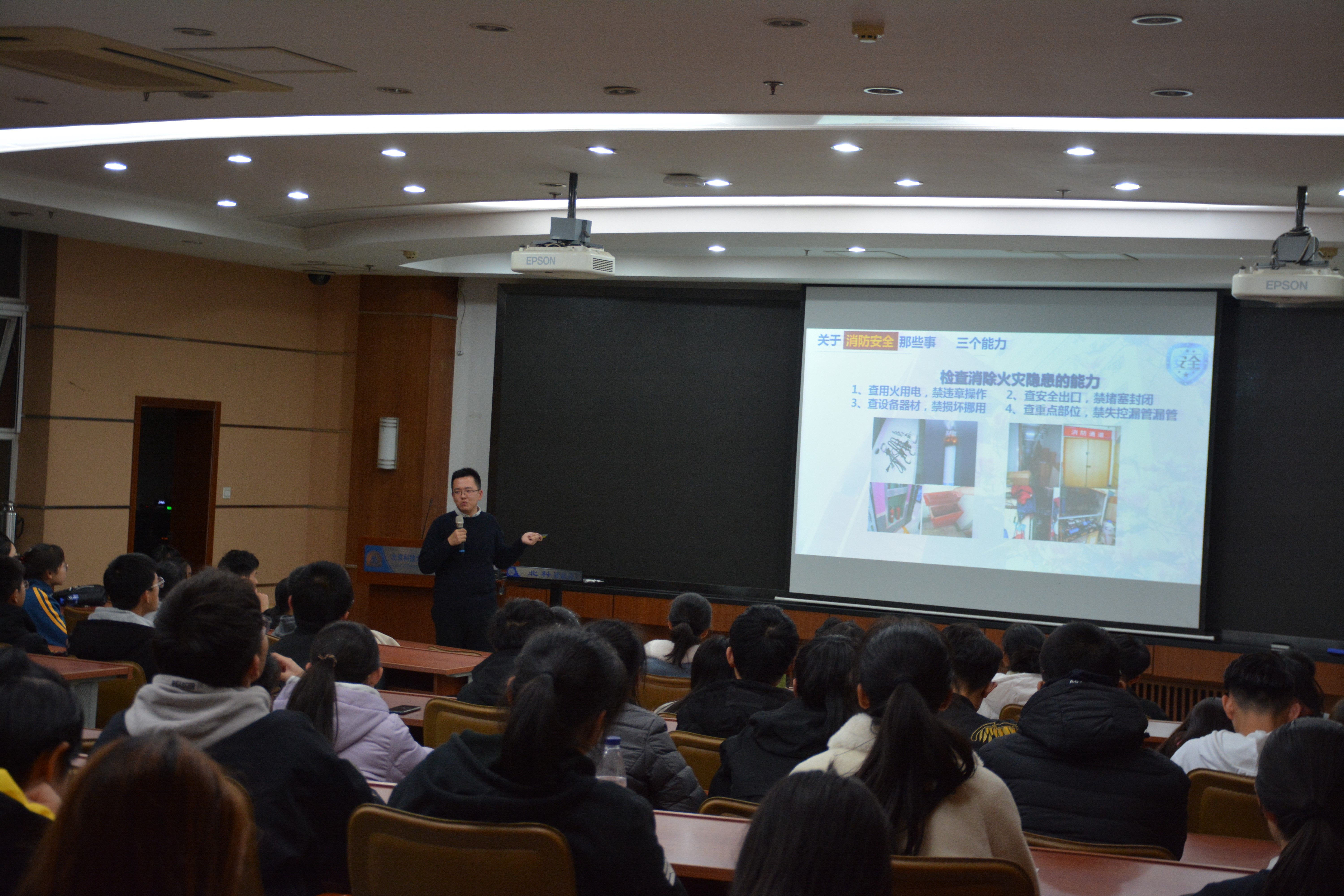 最后,张洪榛给同学们介绍了关于消防演习的具体时间地点、演习前需要准备的物品、演习的整个流程以及过程需要注意的事项,同时给同学们展示了疏散集合的路线图,并讲述了此次演习的重要意义,希望同学们能够全员参与。