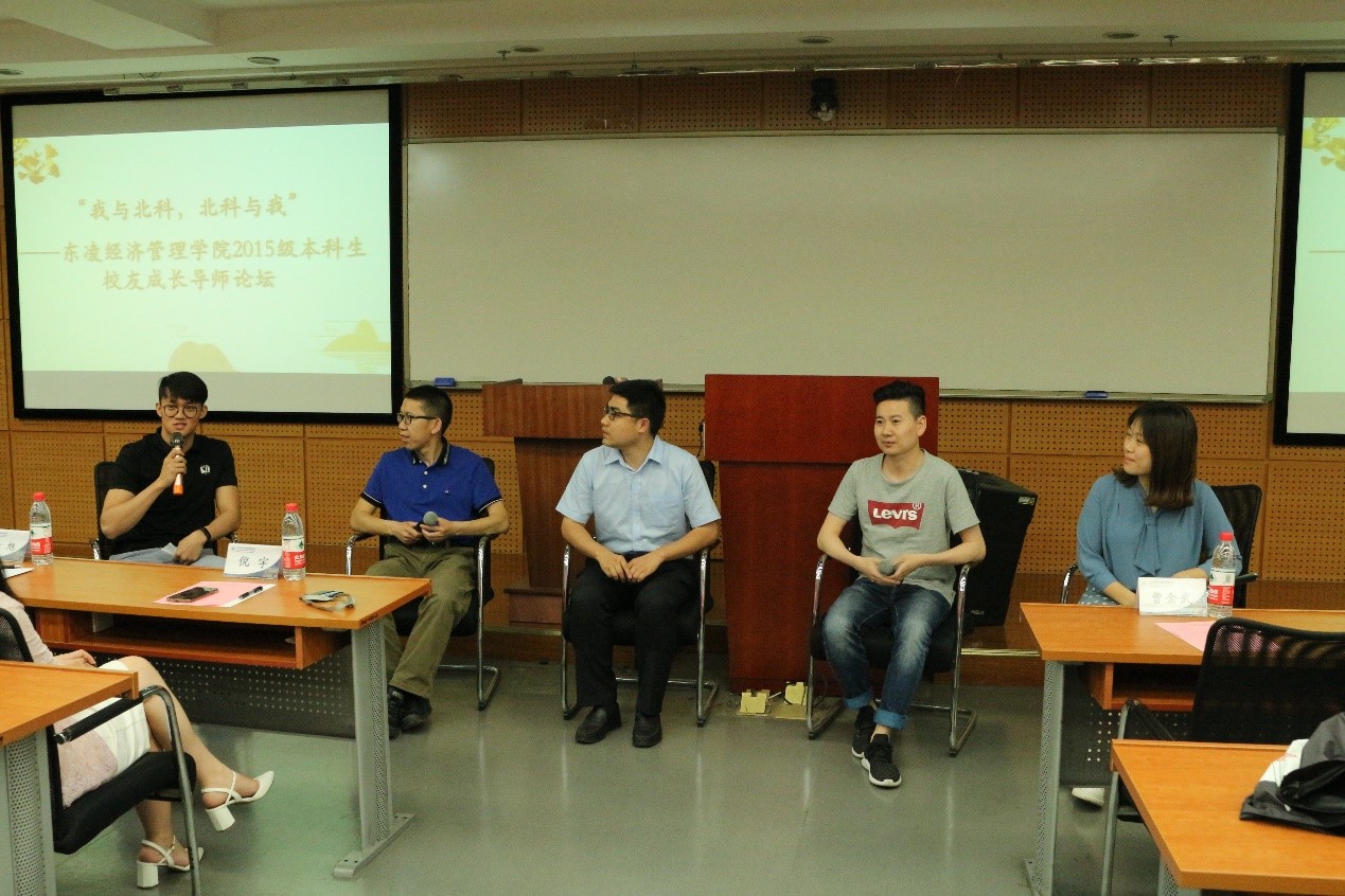 5月19日, “我与北科,北科与我”——经管学院2015级本科生校友成长导师论坛在经管楼210成功举办。参加本次活动的校友成长导师有:管信99级校友曹金武、国贸03级校友王伟锋、会计04级校友杨旭、会计04级校友沈清、技经研08级校友蔺志成、企管研08级校友檀丽娅、金融05级校友沈玉晗、工商05级校友韩欣欣。东凌365英国上市官网党委副书记倪宇出席活动。