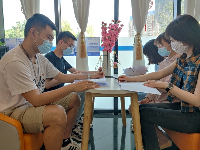 参观结束后,双方采用圆桌会议的形式,围坐在一起就党建联建活动的开展进行了充分的交流。过程中,大家纷纷提出自己心中的疑问。例如,刘维同学提出学生党支部的党建活动更侧重于理论层面,银行党支部是如何从实践层面,在日常的银行业务中开展党建工作的;刘晓敏同学提出银行党支部平时的理论学习活动有哪些;王金招同学提出银行在疫情期间是怎样推进支部活动的;王梓同学提出党建活动在银行经营中起到了怎样的作用。面对大家的提问,白经理指出银行一般从“入社区,进企业”两个层面入手来开展党建活动,结合银行自身的优势来服务社区居民和企业。在实际工作中,党建活动发挥着重大作用。例如在疫情期间,银行线下网点的到店人数急剧下降,即使在疫情相对稳定的时期,部分在外拓营销业务的员工还是出现了畏难情绪。因此,银行党支部充分发挥党员的先锋模范作用,以“党员+群众”的方式,组建了三支攻坚先锋队,让党员冲锋在前,率领员工进行外拓营销。在党员的引领下,员工们的信心倍增,最终都取得了不错的业绩。当然为保障员工安全,大多数党建活动仍旧采取线上形式,如开展党员读书分享、金融知识宣讲等。白经理表示,在建党百年之际,非常欢迎同学们能够常来上海银行海淀支行参观交流,也为银行带来更加新颖的党建形式,在活动中舒缓员工业务压力,增强支部凝聚力。大学生作为银行的服务对象之一,常与他们交流也有助于了解其需求,发现银行现有业务上的不足,有针对性地提升员工业务能力,从而更好地服务广大人民群众。会后,与会党员表示白经理的解答具有很大的启发意义,也欢迎上海银行海淀支行党支部能够来到北科大经管学院参观并展开更深层次的交流。