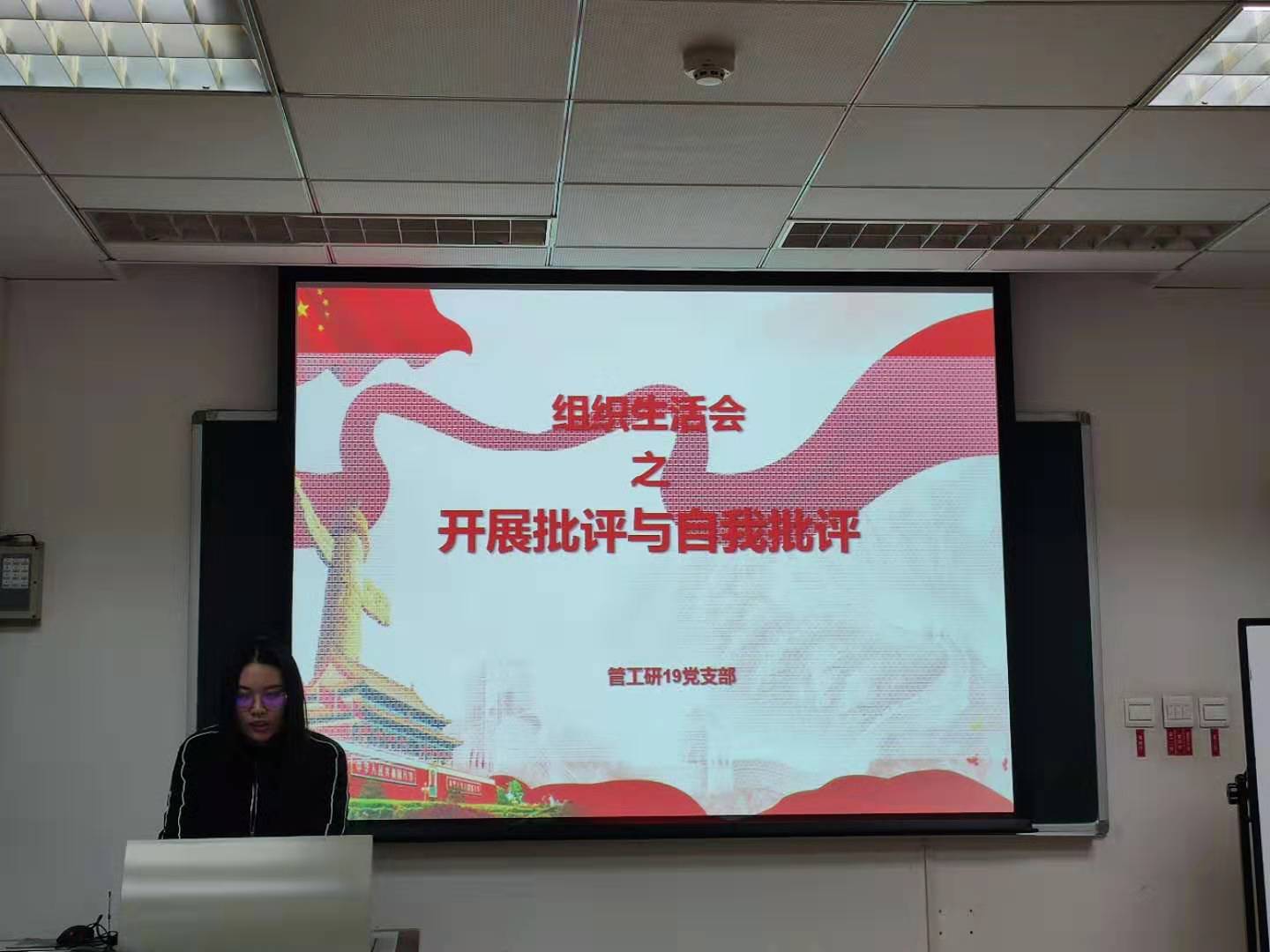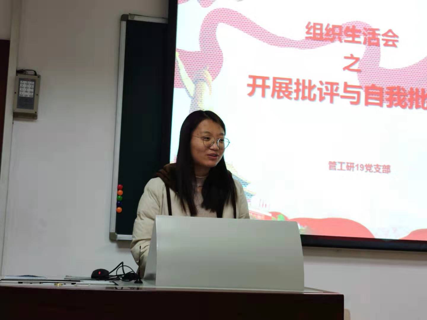 11月22日,东凌365英国上市官网管工研19级党支部在管楼504开展了以“批评与自我批评”为主题的组织生活会暨“一人一党课”活动,党支部书记尹香婷主持本次活动,研究生辅导员李响应邀出席。