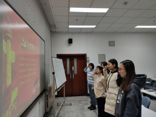 之后由尹香婷同志带领全体党员重温入党诗词并进行总结发言,她对转正的同志表示祝贺并给予殷切的希望,同时要求大家要做到“遇到困难要上,遇到荣誉要让”,除此之外要端正自己的态度,在今后的生活中要用严格的要求来约束自己,真正起到先锋模范带头作用,获得了每位党员的一致肯定。