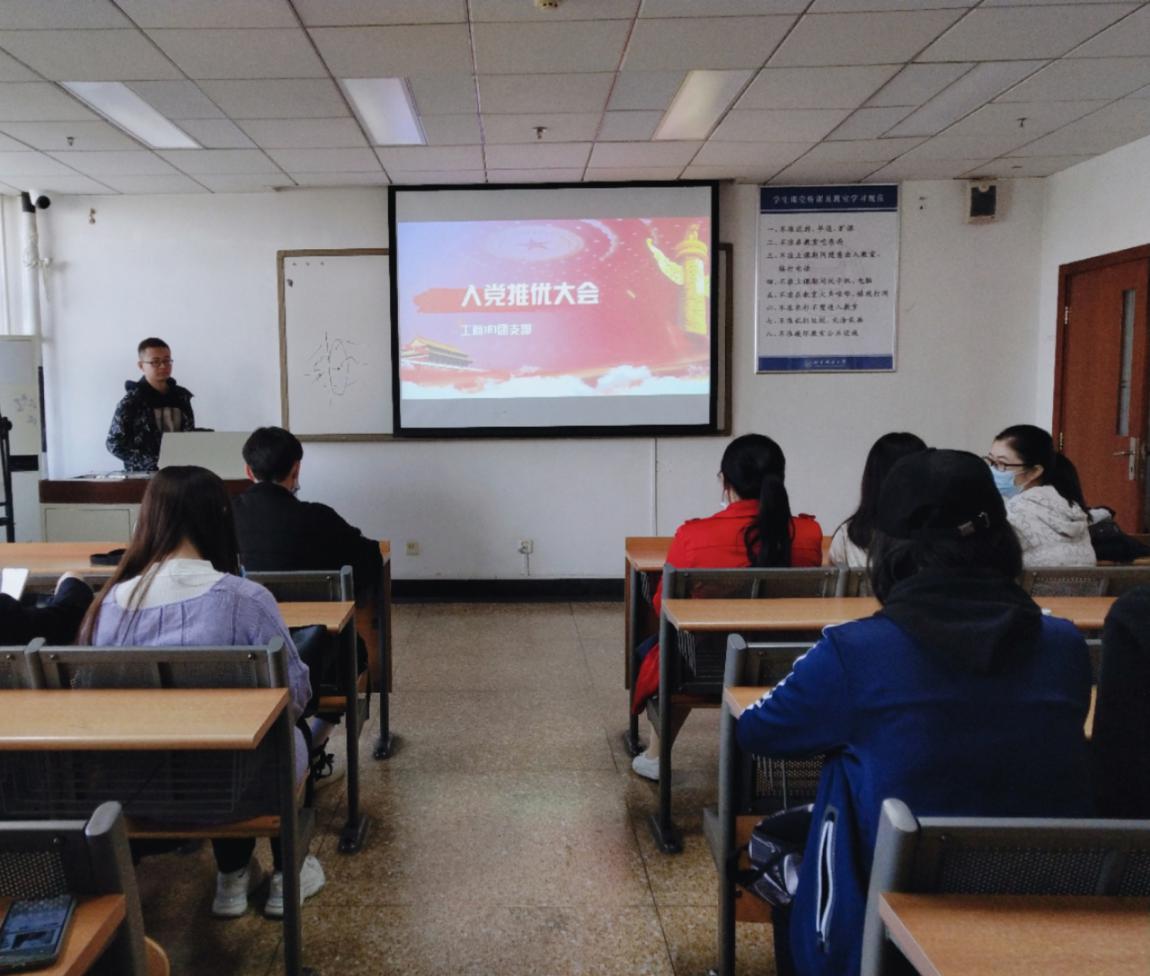 整个推优活动严格遵守推优工作的相关规定与要求,严谨的工作作风体现了入党的严肃与庄重。本次推优活动为班级团员同志们提供了一个自我展示的机会,使同学们能够进一步向党组织靠拢,学习党拥护党,紧密团结在党的旗帜下。