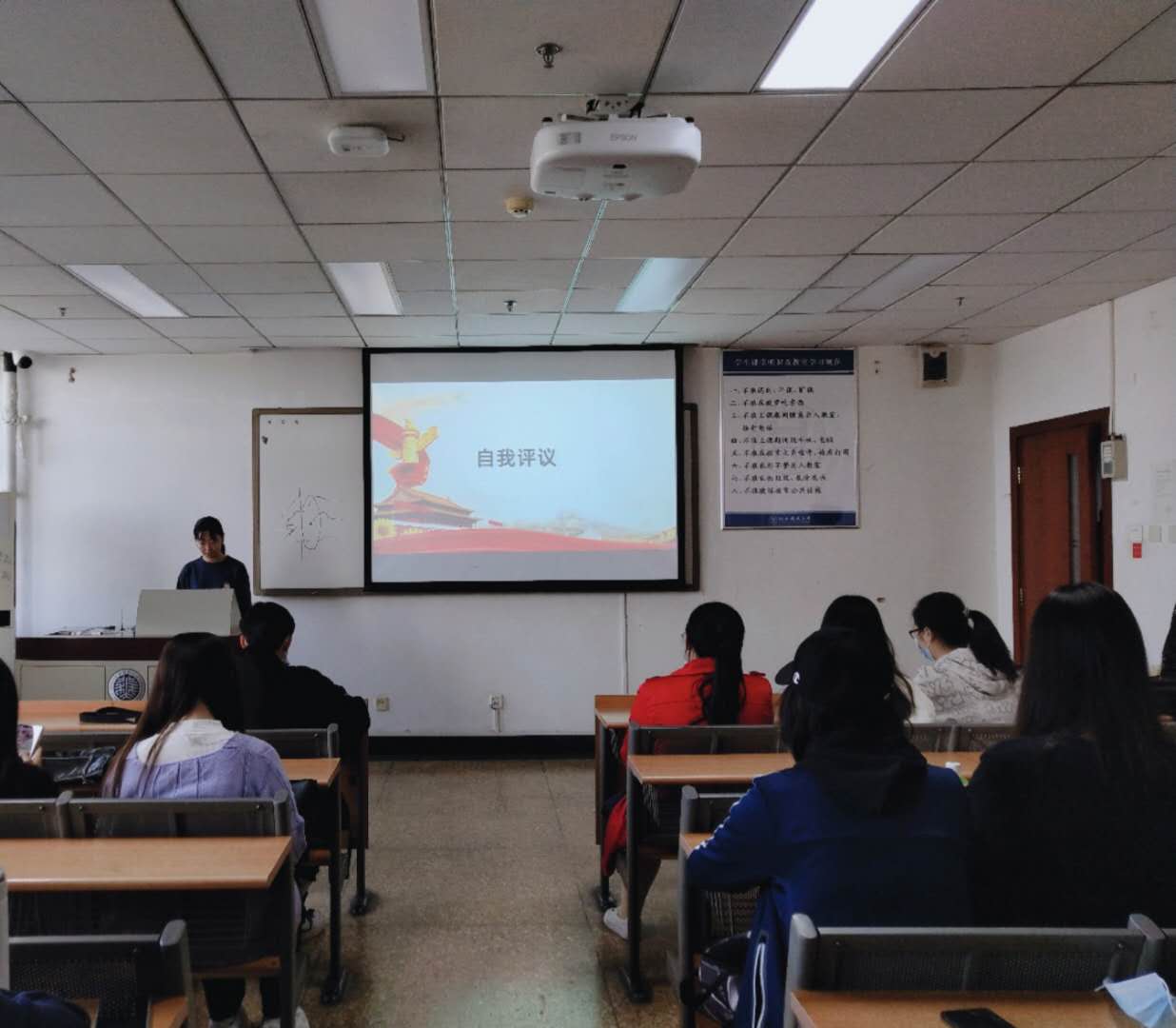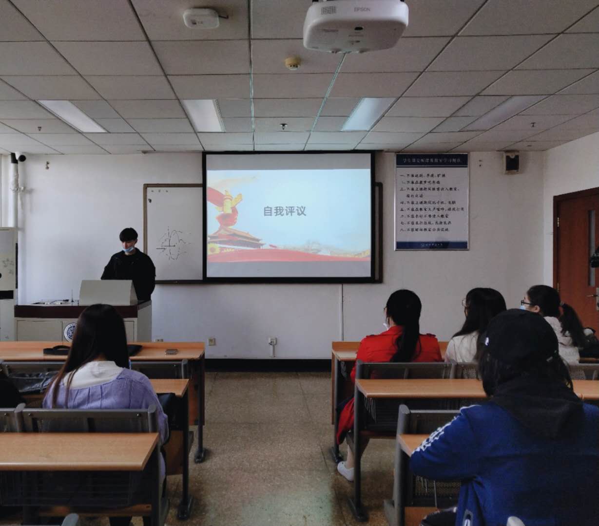 大会开始,团支书刘琦介绍了本期入党积极分子推优的推优规则并宣读了2名候选人名单。接着,候选人艾斯力木江·帕日哈提和季佳艺依次上台进行了3分钟的自我陈述,严肃认真地从对党的认识、入党理由以及自身的学习、工作、生活情况等方面进行了介绍。随后,团支书刘琦组织同学们秉承公平、公正的原则进行了民主投票,班级内除候选人以外的25名同学,采用无记名投票的方式,对候选人进行民主评议。经过投票,最终艾斯力木江·帕日哈提和季佳艺两位同学以25票的高额票数,光荣地获得了本次入党推优的资格。