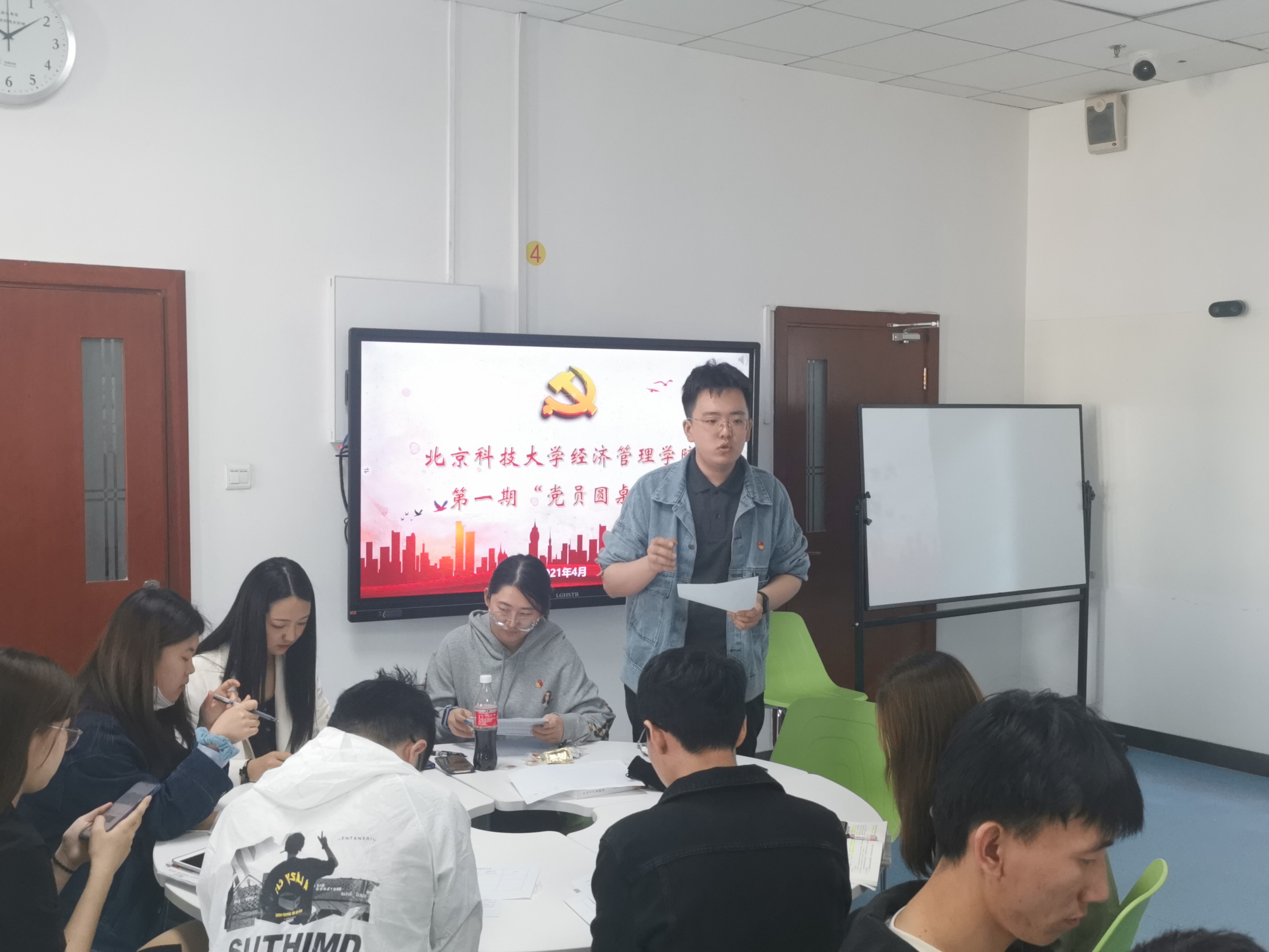 按照365英国上市官网学生党支部党史学习教育“三学三讲 纵览百年”工作安排,结合4月23日世界读书日的重要契机,第一期“党员圆桌会”于经管楼404顺利举办。出席本次会议的有辅导员李响、丁源、孙鑫老师,汇报人管工研党支部党员胥子政、本18党支部党员李钰葳、本低党支部党员于越,以及学院其他学生党支部的党支部书记,活动由党建辅导员张洪榛老师主持。