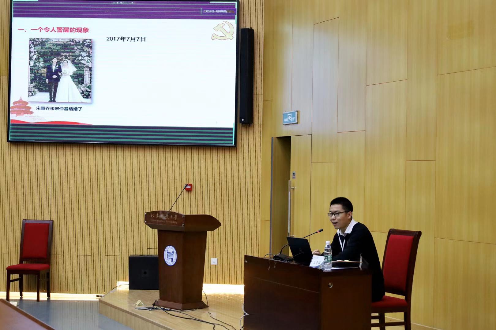在报告中,王英辉老师从一个令人警醒的现象作为切入点,以当今社会上的泛娱乐化导致社会大众对诸多伟大的历史人物的忘却进行举例,告诫我们,“灭人之国,必先去其史”,要警惕前车之鉴。接下来王老师通过横向东西方空间上的强烈对比,和纵向时间轴上的娓娓讲述,向大家讲解了为什么说中国是一个令人敬佩的国家。过程中王英辉老师提出了一个值得研究的现象,中国共产党作为为普通老百姓谋福利的政党,早期的领导人却大多数是出身于比较富裕的家庭,但他们都放弃了过中上等的生活,选择为共产主义事业奋斗,说明坚定的理想信仰对人成长的强大作用。同时王英辉老师也举出了习近平主席投身基层、努力奋斗的例子以及奋斗在抗击疫情一线的医护人员的例子,向同学们展示了中国成为一个令人敬佩的国家背后的原因。