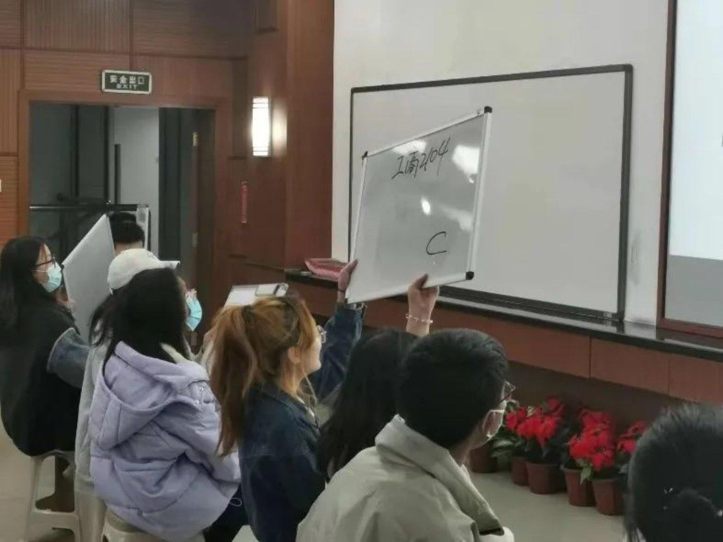 第三轮中,三支队伍进行最终的角逐,同学们积极抢答,最终来自工商2104班的队伍取得一等奖,而来自管理2102班和工商2106班的队伍获得二等奖。