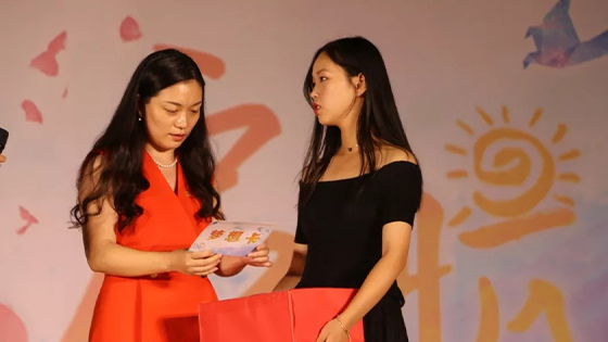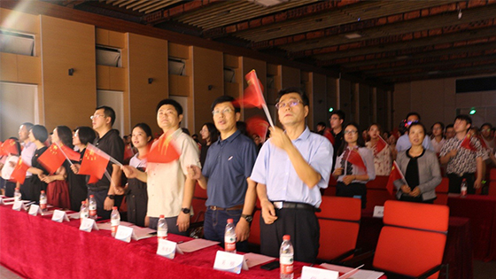 王小宁老师为新生代表送上精心挑选的书籍,寄语同学们弘扬伟大的爱国主义精神,为实现中华民族伟大复兴的中国梦不懈奋斗。王鹂老师为新生代表送上为2019级本科生专门制作的纪念品——经管牛钥匙扣,希望同学们像牛一样工作中默默奉献,在生活中斗志昂扬。最后,全场老师、同学们用一曲《歌唱祖国》向祖国母亲献礼,开学典礼在一片歌声中圆满落幕。