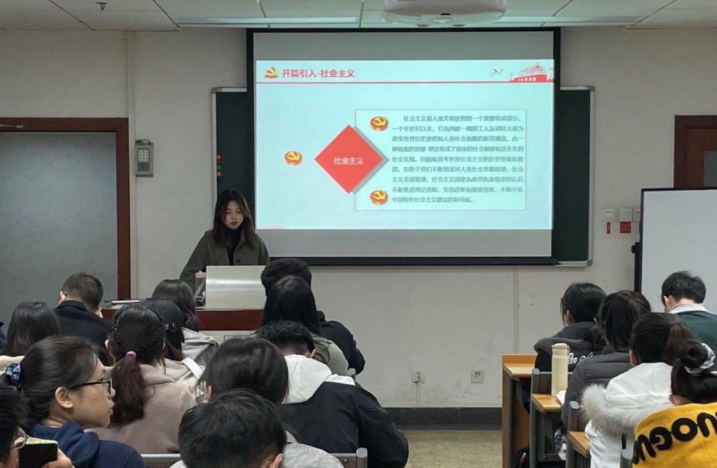 社会主义发展史是世界社会主义发展的历史,既包括社会主义理论的发展史,也包括科学社会主义在各国的实践尤其是中国特色社会主义的实践历程。为了让党员、入党积极分子更全面了解社会主义思想的发展历程、更加深刻地体会社会主义发展过程中的前进与曲折,经管本科低年级党支部4位预备党员带领同学们详细的学习了社会主义发展的历史。