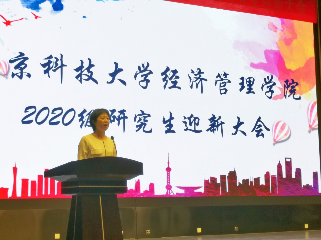 首先,全体起立奏唱国歌。随后,武森致辞。武老师对加入经管大家庭的2020级研究生表示祝贺与欢迎,并向同学们介绍了学院的发展历程、成长规模、学科发展、师资力量、国际认证等。最后,她对同学们提出三点期望,一是修身正己,提升个人品性;二是精益求精,秉承卓越精神;三是追求真理,恪守学术规范,表达了对新生的殷切期盼。