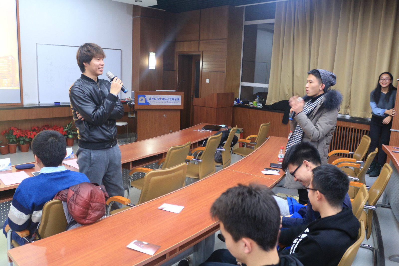 关于学习与学生工作,段利锋校友建议同学们要平衡好学习与学生工作之间的关系,并给出从事会计工作的一些细节和建议;洪雪菲校友强调应该充分利用好上课的时间,以保障课余时间可以做自己喜欢的事,看书和旅游都是丰富自己谈资最好的方式;张大川校友希望同学们学好数学,上课要好好听讲,培养自己的团队合作能力并挖掘自己的兴趣,并着重讲了信管与工管的区别。