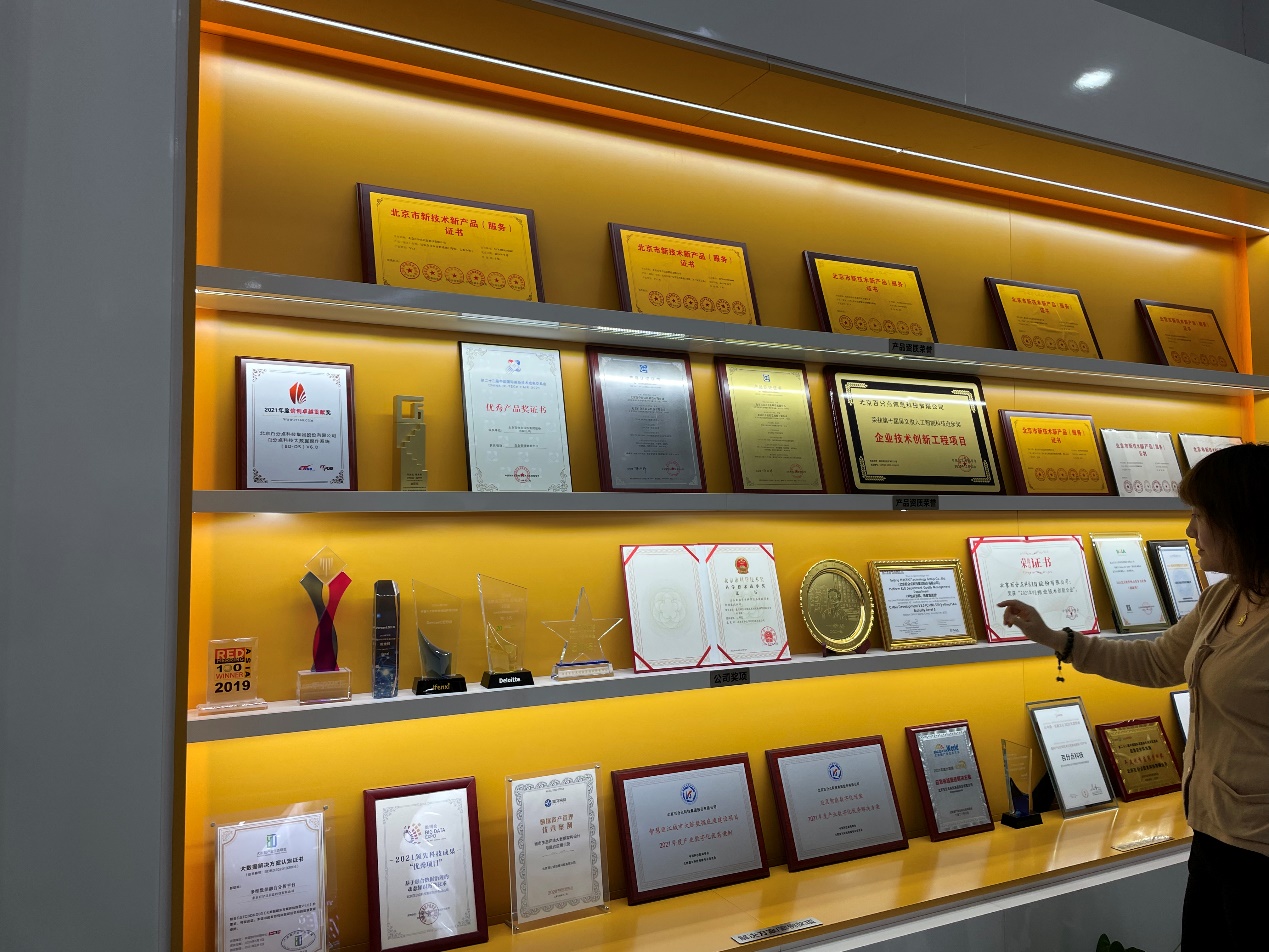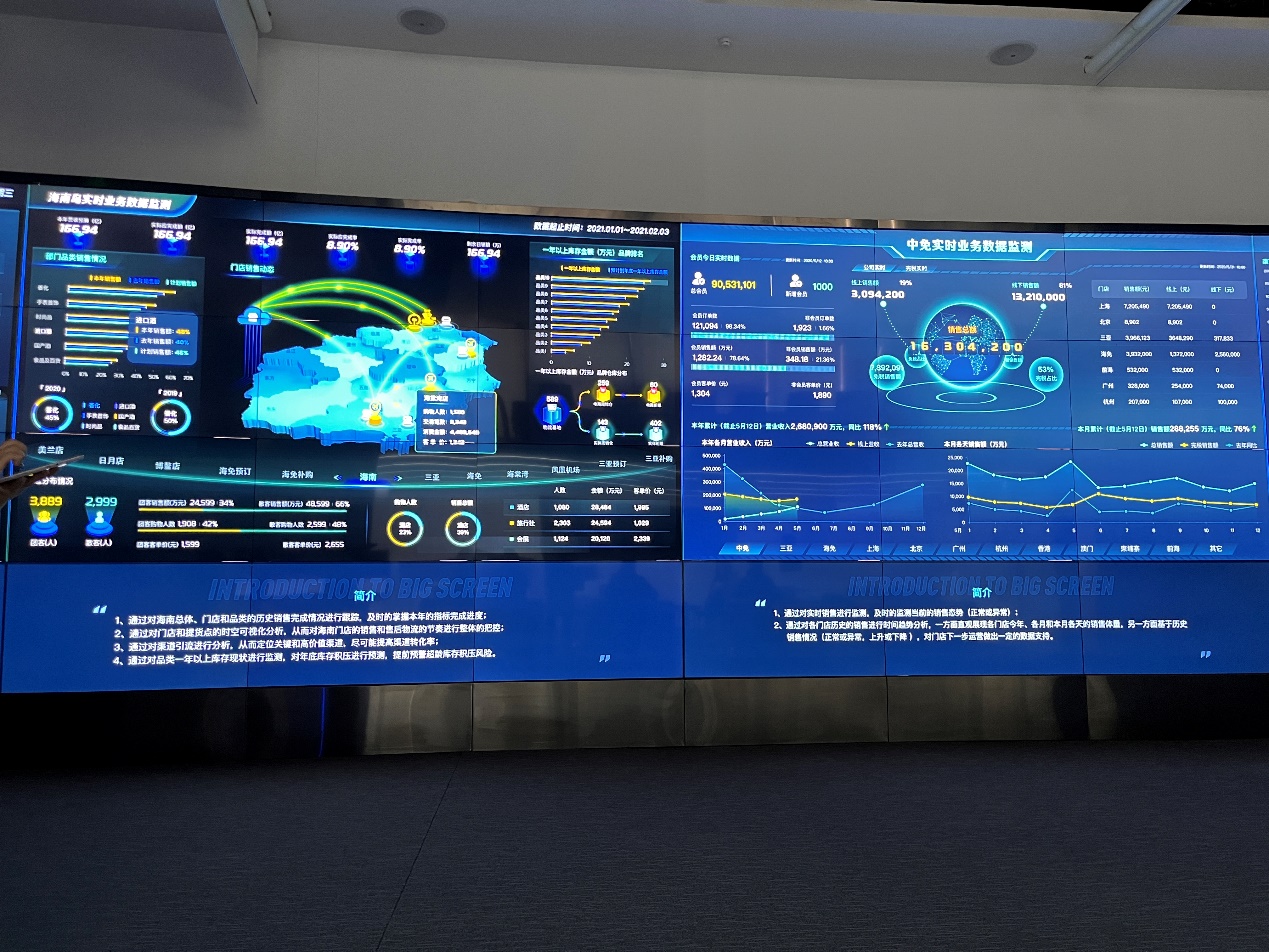 随后,杜博士带领几位老师沉浸式体验了公司的数字智能展示厅,演示了从软件设计搭建到业务设计一键式控制系统,并介绍了企业诸多重点项目:数字城市项目如“北京石景山区城市运营指挥中心”、“丽江城市大脑数据底座”;企业数字化经营决策项目如销量监控、预测、创新品类与新产品投放市场分析等;宏观经济运行趋势、智慧应急管理等专题性研究与建设项目。