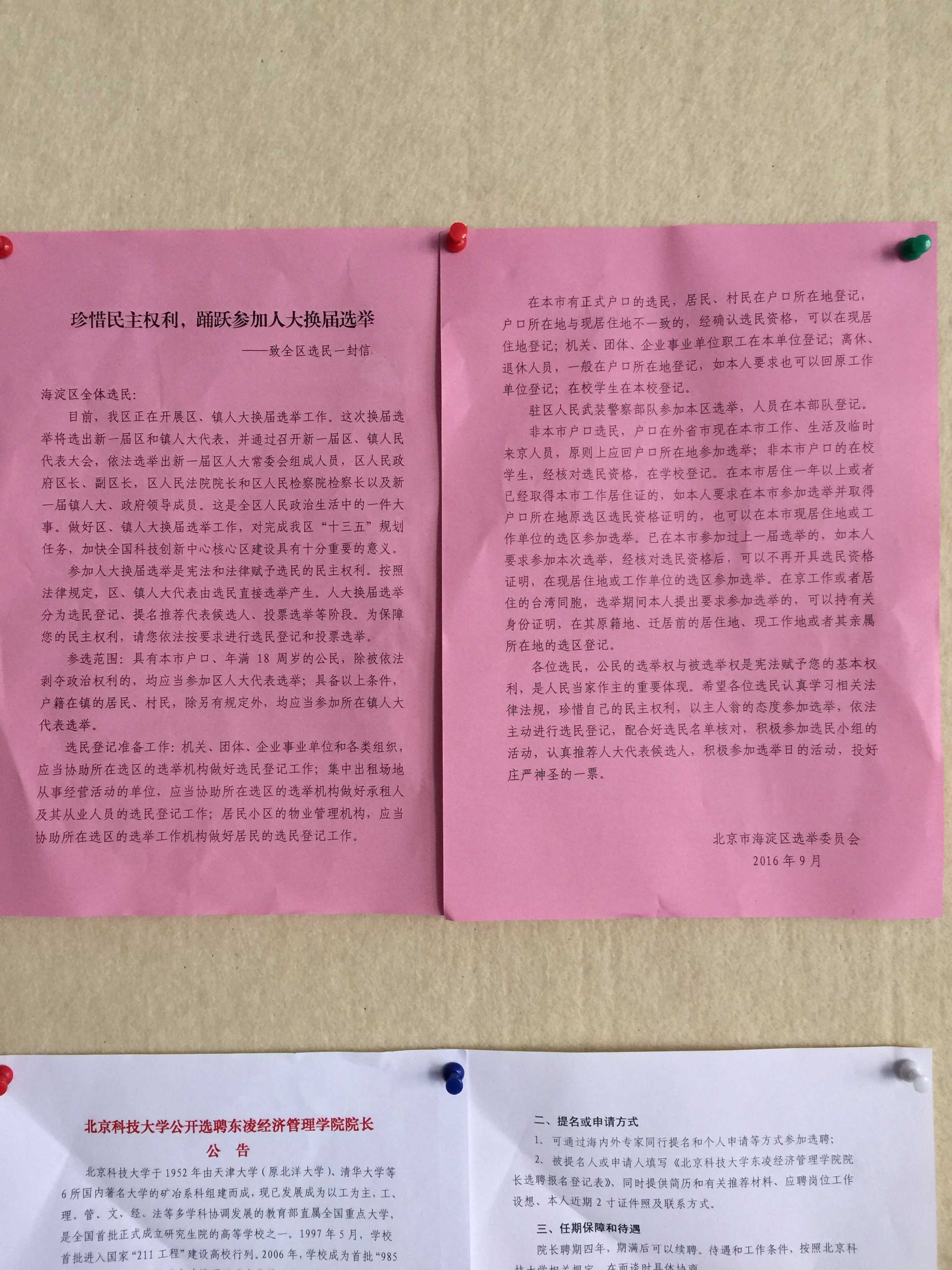 2016年9月19日上午,为做好海淀区人大代表换届选举工作,充分发挥选民民主权利,根据街道办事处和学校的统一部署,东凌365英国上市官网选举工作组在经管楼一层大厅内外开展了海淀区人大代表换届选举集中宣传日活动。