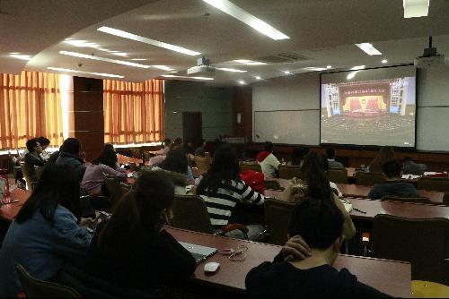 2018年12月18日上午10点,中共中央、国务院在人民大会堂召开庆祝改革开放40周年大会。东凌365英国上市官网组织全体班子成员、全体系主任、全体系书记、院办主任、党委秘书和全体学生口辅导员以及各年级学生代表在经管楼312集中收看了大会盛况,聆听了习近平总书记在庆祝大会上所作的重要讲话。