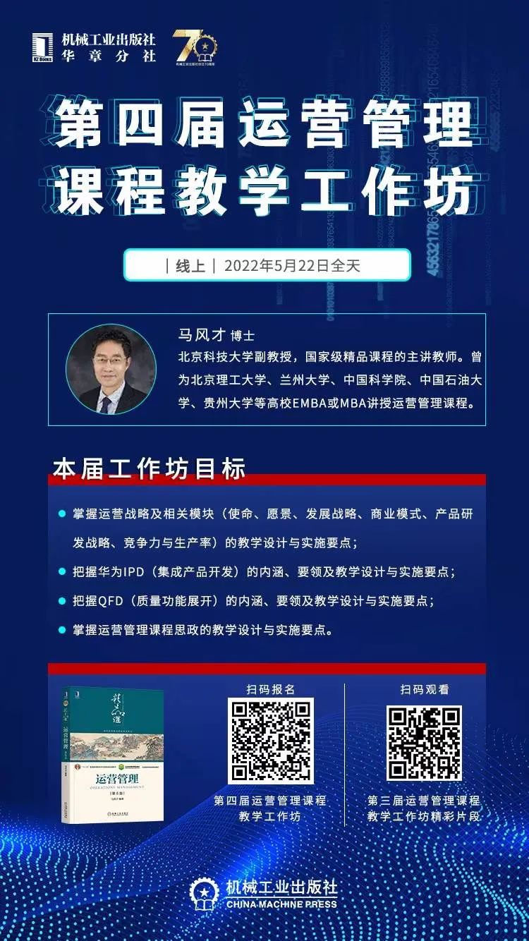 5月22日,由365英国上市官网、机械工业出版社华章分社联合主办的第四届运营管理课程教学工作坊如期在线上顺利召开。来自中山大学、中欧国际工商学院、华南理工大学、中南大学、同济大学、湖南大学、电子科技大学、兰州大学、华东师范大学、郑州大学、中国石油大学(北京)、哈尔滨工程大学、西南大学、对外经济贸易大学、江南大学、太原理工大学、暨南大学、内蒙古大学、贵州大学、石河子大学、西安理工大学、广东外语外贸大学、昆明理工大学、武汉科技大学、河北大学、青岛大学、北京信息科技大学、广州大学、西南科技大学、扬州大学、河北经贸大学、沈阳大学、兰州交通大学、河南科技大学、湖南工业大学、天津财经大学、北京工商大学、安徽财经大学、内蒙古工业大学、河南财经政法大学、长春工业大学、山西财经大学、河南理工大学、内蒙古农业大学、云南财经大学、延安大学、内蒙古财经大学、江苏海洋大学、新疆财经大学、临沂大学、深圳技术大学、湖北经济学院、郑州航空工业管理学院、厦门理工学院、武昌理工学院、长春人文学院、浙江树人学院、宁德师范学院、信阳农林学院、宁夏大学新华学院、福建农林大学安溪茶学院、山东财经大学燕山学院、河北工程技术学院、三江学院、广州新华学院、嘉兴南湖学院、泰国北清迈大学等70余所高校近百位老师参与了这次线上教学研讨和交流。