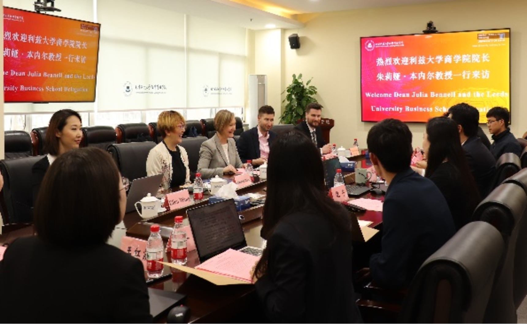 3月14日,英国利兹大学(University of Leeds)商学院执行院长Julia Bennell率代表团访问我院并洽谈合作事宜。院长谷炜、副院长倪宇出席会见。此次访问是利兹大学常务副校长余海岁(Hai-sui YU)教授率团访问我校的重要组成部分,旨在通过签署合作协议,推动两校全方位、深层次合作。