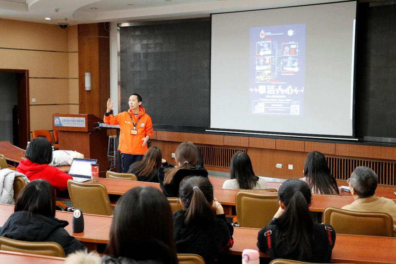 本次培训,学院特邀“第一反应”急救导师陈京凯先生莅临授课。陈京凯先生结合自身丰富的急救实践案例,通过诙谐幽默的讲解和深入浅出培训形式,让现场师生员工学习到了标准的心肺复苏方法、AED操作方法及卒中、出血、气道梗阻等部分常见意外事故的急救知识和急救措施,全面了解了突发事故的救助流程和急救技能。