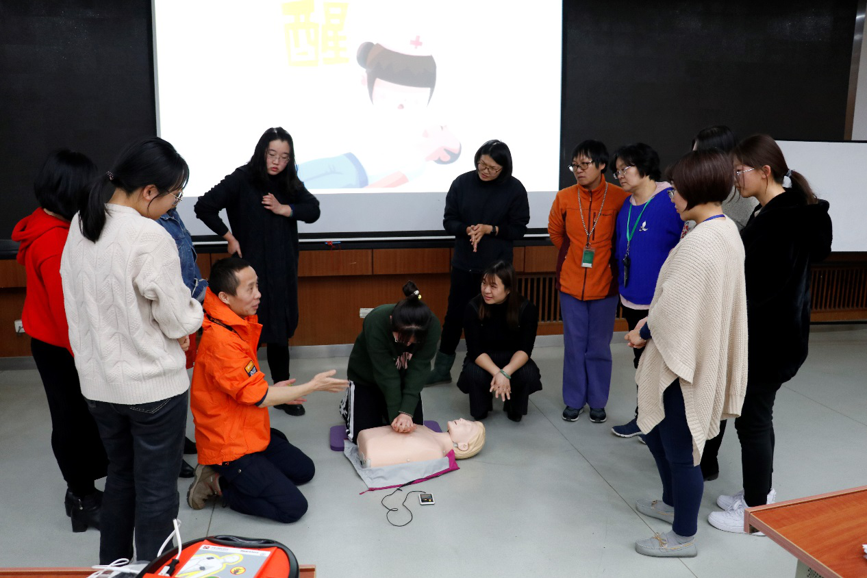 为提高学院师生员工的急救意识与现场急救能力,掌握心脏自动体外除颤仪(AED)使用方法,2019年12月12日下午,东凌365英国上市官网在经管楼405室开展了急救知识技能培训。学院全体党政管理人员、各系所工会小组长、教师代表及各班级生活委员累计近100人,共同参加了此次急救知识技能培训。