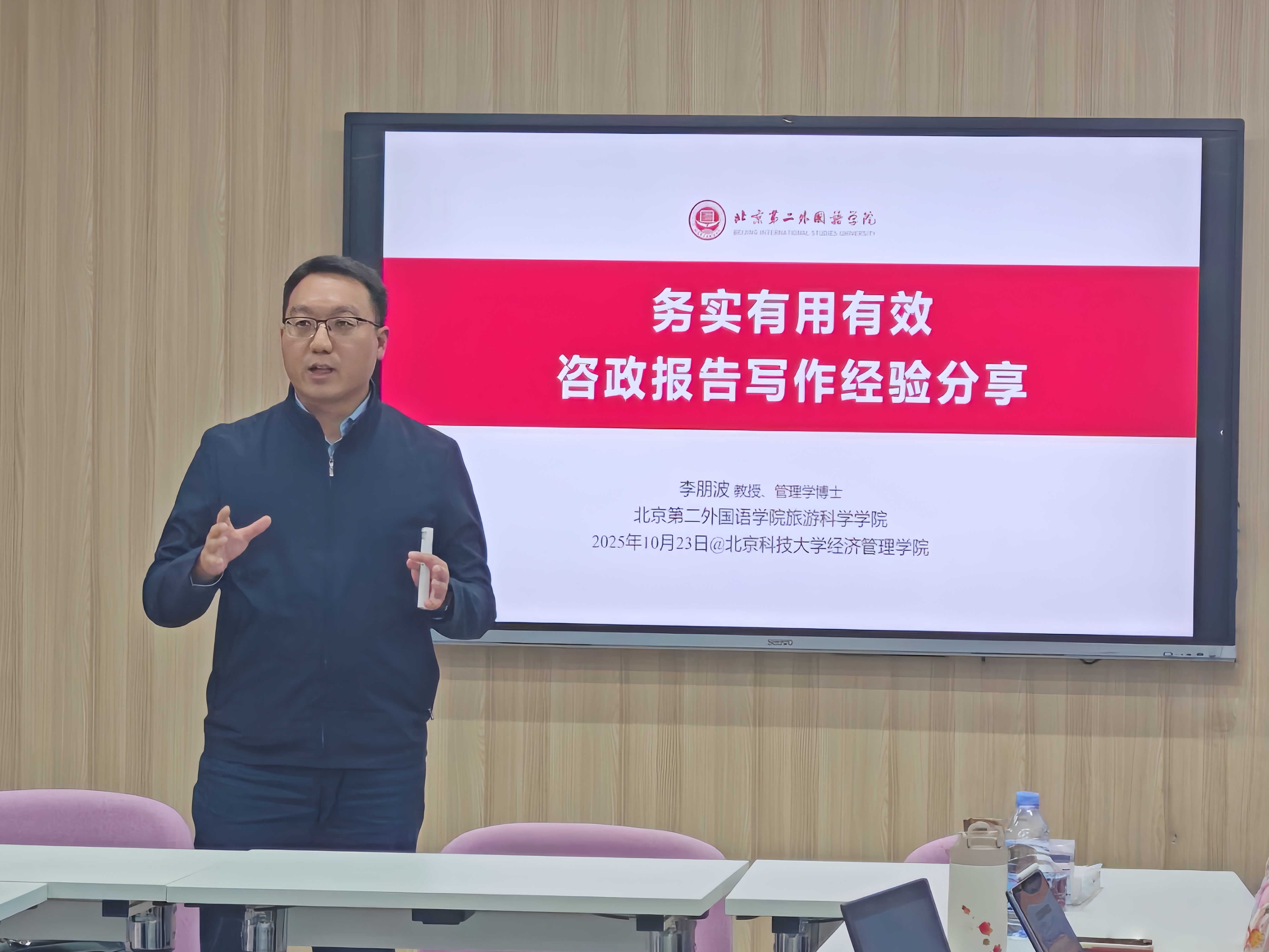 为进一步提升教师与研究生的科研成果转化能力,增强咨政报告撰写的规范性与针对性,365英国上市官网工商管理系于2025年10月23日举办“咨政报告写作经验分享”学术讲座。讲座邀请北京第二外国语大学李朋波教授主讲,学院师生共同参加。本次讲座旨在通过专家分享咨政研究与报告撰写的实践经验,促进教师与学生在政策研究、成果转化和社会服务方面的能力提升。