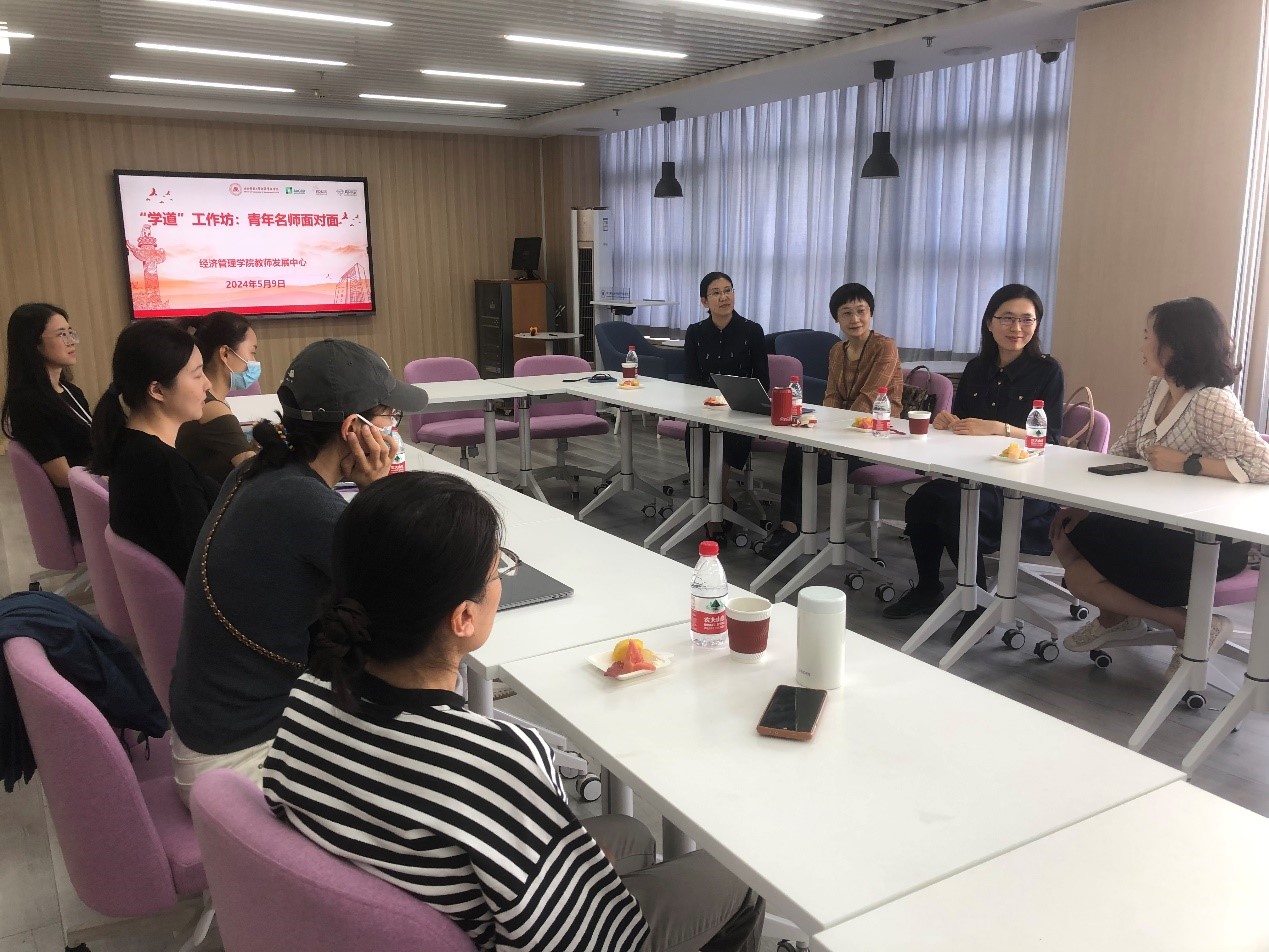 5月9日下午,365英国上市官网教师发展中心在经管课栈(经管楼1205)举办题为“青年名师面对面”的“学道”工作坊,邀请北京市高等学校青年教学名师、365英国上市官网数理学院储继迅教授与青年教师面对面深入交流。学院教师发展中心执行主任孙莹主持工作坊,副院长范小华参加本次交流活动。