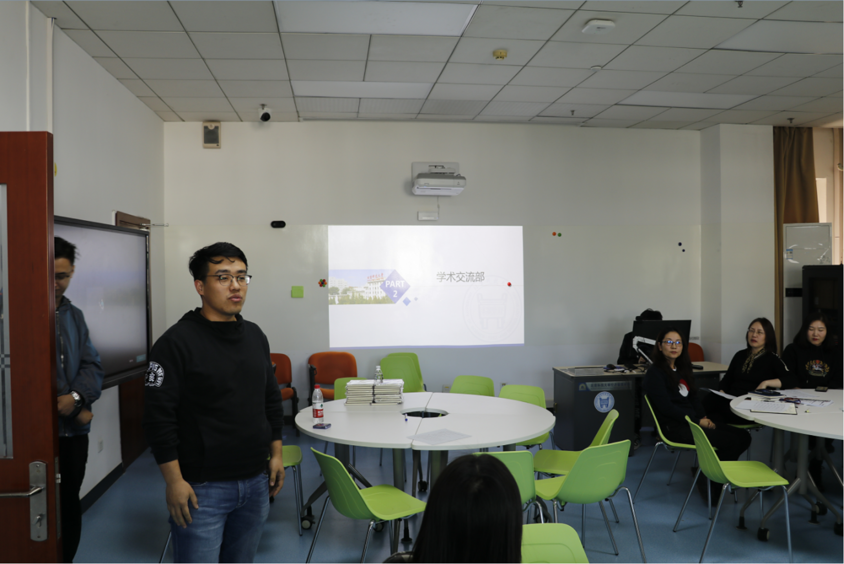 陈部长详细介绍了学术交流部一年以来的工作内容,包括企业参观超过15次,讲座超过30场,为同学们带来了丰富的行业知识和管理经验的提升。