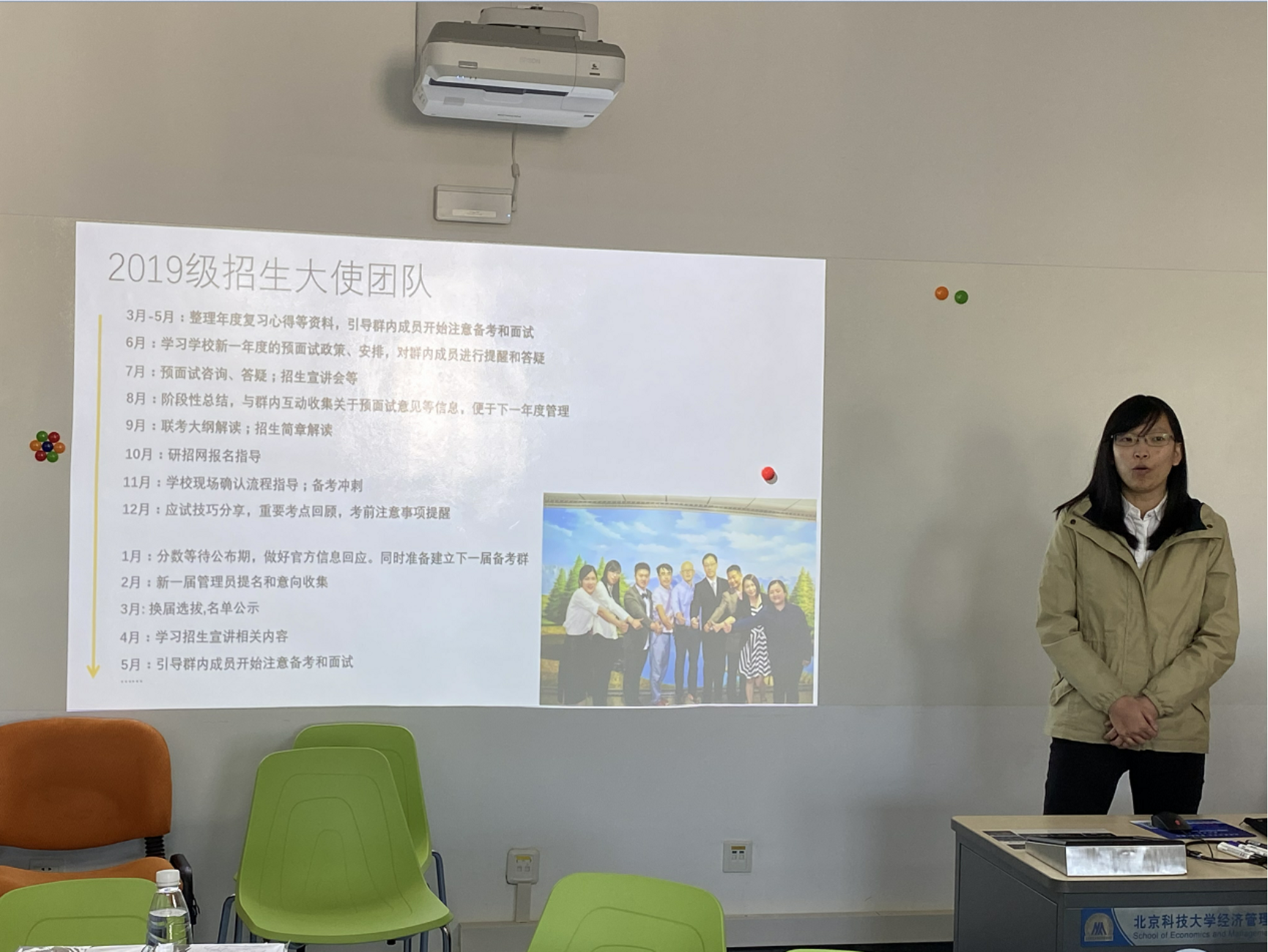 林广宇详细介绍了社群部未来的工作规划——传承、答疑指导、创新。打造MBA形象,让考生感受到北科的温度和力量。