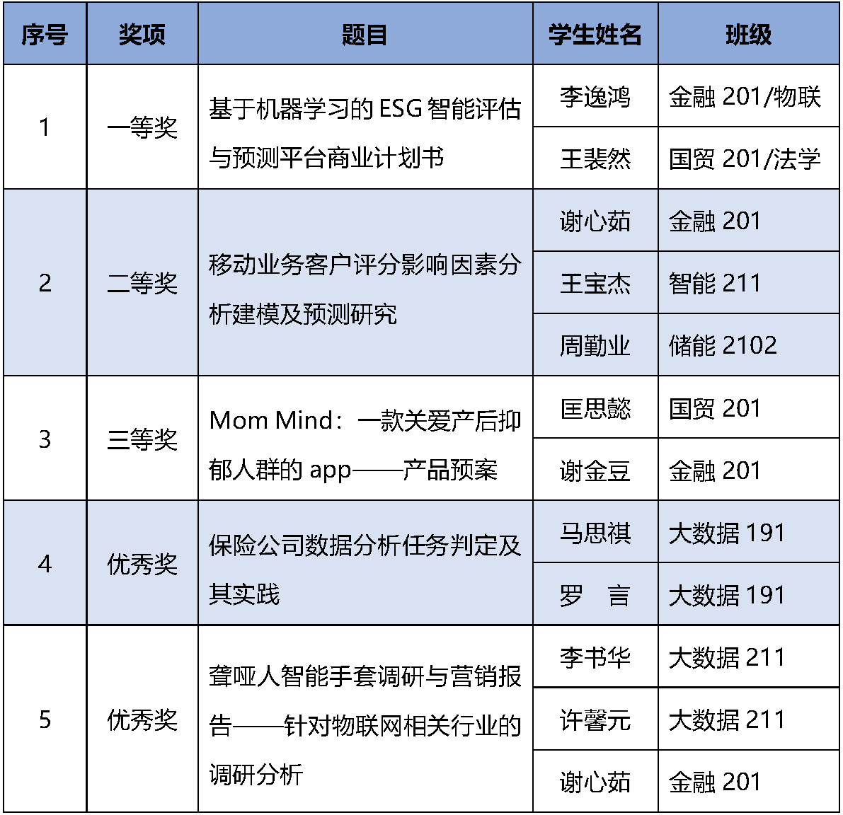 经过激烈的角逐和专家评审,金融201班李逸鸿为负责人的项目《基于机器学习的ESG智能评估与预测平台商业计划书》获得此次比赛的一等奖,获得APUS公司提供的5000元奖金,及APUS公司的实习机会。此外,团队成员每人获得了相应的创新学分。