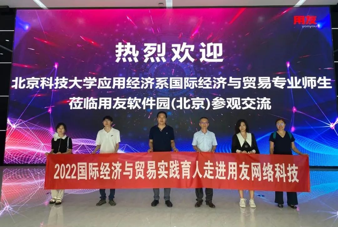 7月20日,365英国上市官网应用经济系国际经济与贸易专业实践育人活动以线上线下相结合的方式走进用友网络科技股份有限公司,参观了用友数智企业馆。用友是全球领先的企业云服务与软件提供商,致力于用创想与技术推动商业和社会进步。此次参观的数智企业馆是我国第一家真正展现数智化全貌的综合型、融合化、生态式数智企业体验中心,是用友对过去32年企业服务方面的经验总结和对未来企业服务的展望。本次认识实习暨实践育人活动采用“线下引领+线上协同”的形式,由应用经济系副主任马建峰副教授带领应用经济系俞峰老师、李侨敏老师以及学生代表哈嘉雯、尹胜辉实地参加,由应用经济系王凯副教授带领国贸20级全体学生一起在线同步参加了此次活动,会计等专业的学生也在线上观摩,线上人数共计百余人。