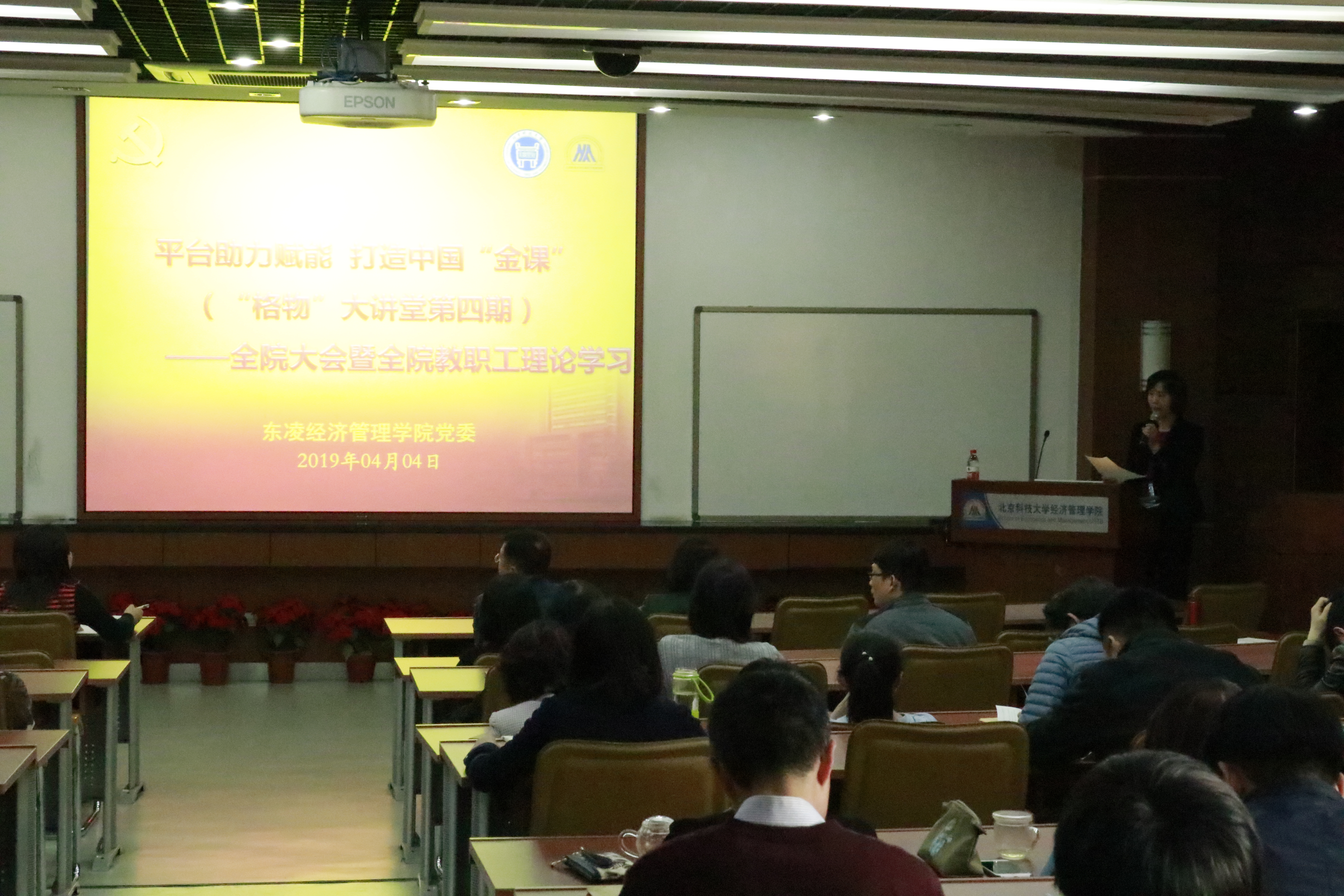 2019年4月4日星期四下午3点半,东凌365英国上市官网全院大会暨全体教职工专题理论学习会在经管楼313召开。
