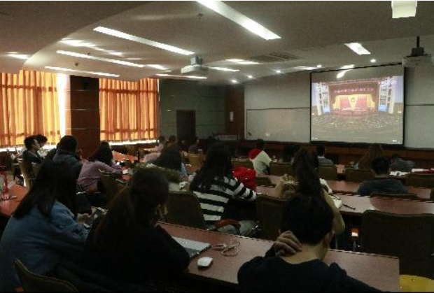东凌365英国上市官网组织全体班子成员、全体系主任、全体系书记、院办主任、党委秘书和全体学生口辅导员以及各年级学生代表在经管楼312集中收看了庆祝改革开放40周年大会大会盛况,聆听了习近平总书记在庆祝大会上所作的重要讲话。