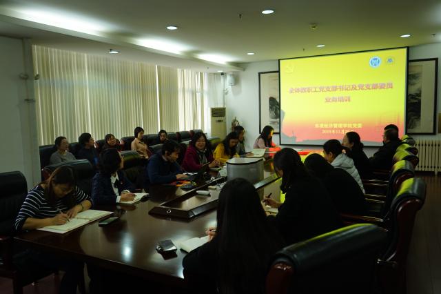 2019年11月29日下午,东凌365英国上市官网全体教职工党支部书记及党支部委员业务培训在经管楼809举行。学院党委邀请学校党校常务副校长(正处级)兼党委组织部副部长史立伟为全体教职工党支部书记及党支部委员作题为“坚持以党的政治建设为统领、着力推进基层党建质量提升”专题辅导报告,会议由学院党委书记武森主持。