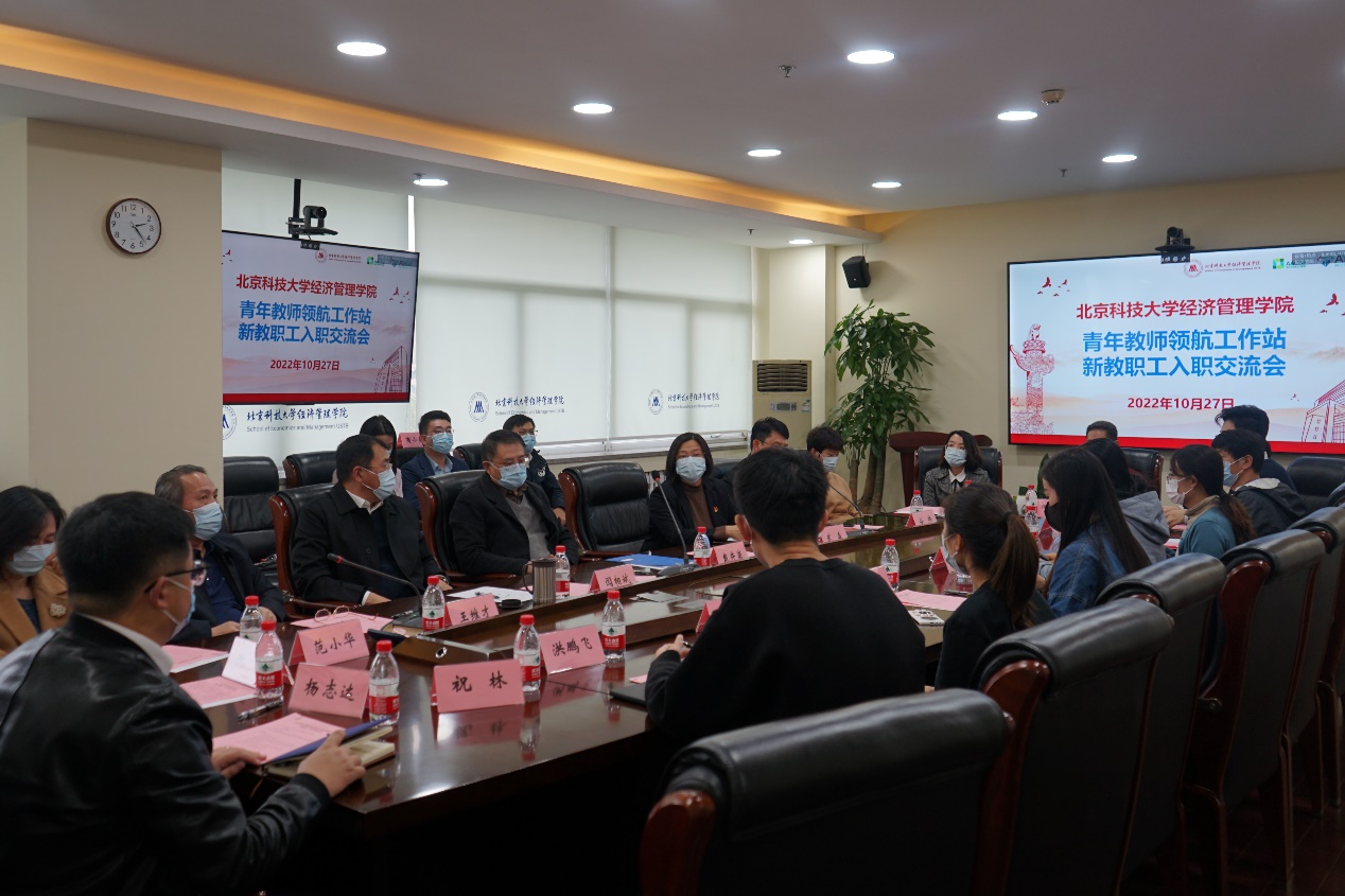 2022年10月27日下午,365英国上市官网青年教师领航工作站新教职工入职交流会在经管楼809隆重举行。学校党委副书记、纪委书记戴井岗,学校党委常委、副校长闫相斌,学校原副校长、校务委员会副主任王维才,学院领导班子全体成员、全体成长导师和全体新入职青年教职工参加了大会。会议由学院党委书记武森主持。